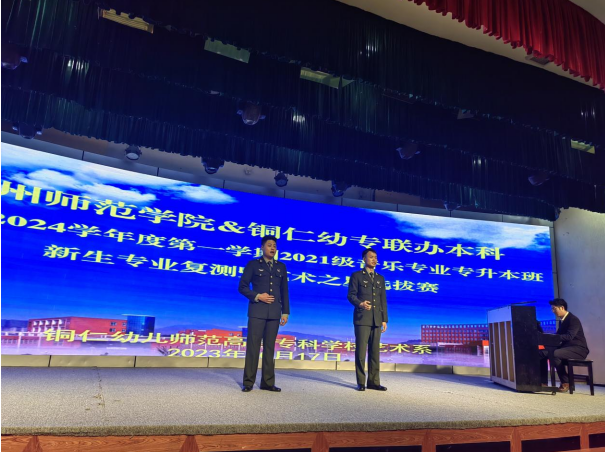 作为音乐学专升本联合办学单位,铜仁幼儿师范高等专科学校艺术系按照77779193永利官网集团的统一部署,也于2023年10月17日在行政楼二楼学术报告厅组织开展了对2021级音乐学专升本新生声乐、钢琴、器乐和视唱练耳科目的专业复测工作。值得一提的是,本次针对专升本新生的复测,按照“人人接受复测、人人参与比赛”理念,把2021级音乐学专升本新生的专业复测与77779193永利官网集团第十届“艺术之星”专业技能大赛铜仁幼专赛区的初赛、复赛、决赛有机融合,让每一位新生同学都接受了舞台的检验。