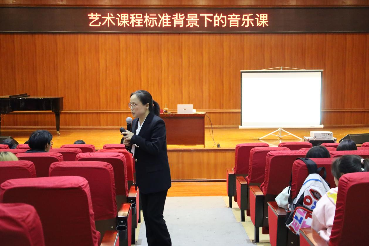 如何使学生对新版义务教育艺术课程标准理解更加准确?如何使学生在新课标指引下更好地开展教育见习、教学研习和教学实习工作?11月2日下午,我院特邀贵州省小学音乐支红名师工作室主持人、贵州省首批骨干教师、六盘水市实验小学副校长支红老师来学院开展以“艺术课程标准背景下的音乐课”为主题的讲座。讲座在学院六楼表演厅展开,由学院副院长王晓主持,音乐学专业全体学生和本年度参加支红名师工作室跟岗实践锻炼的全体教师现场聆听了本次讲座。