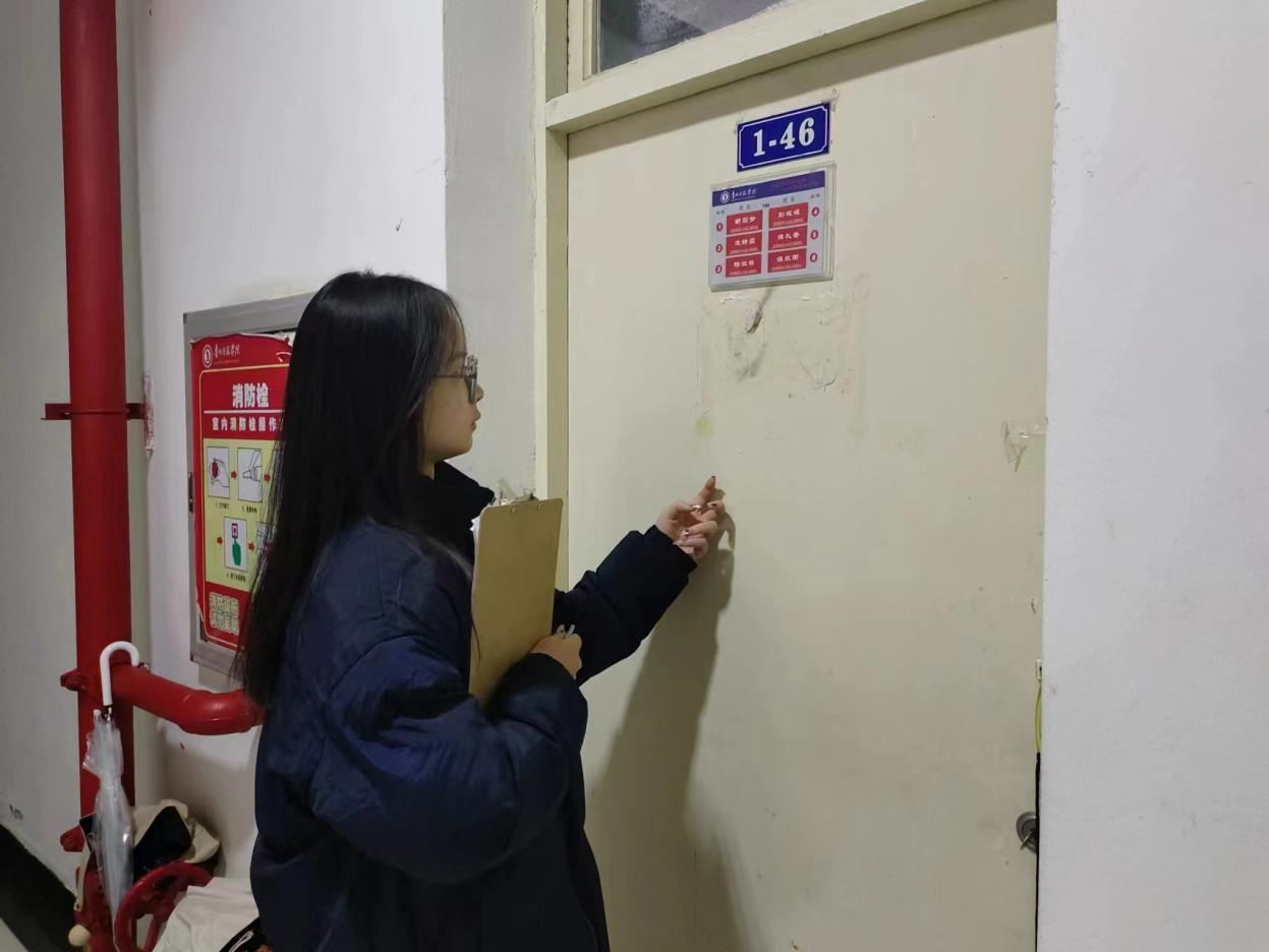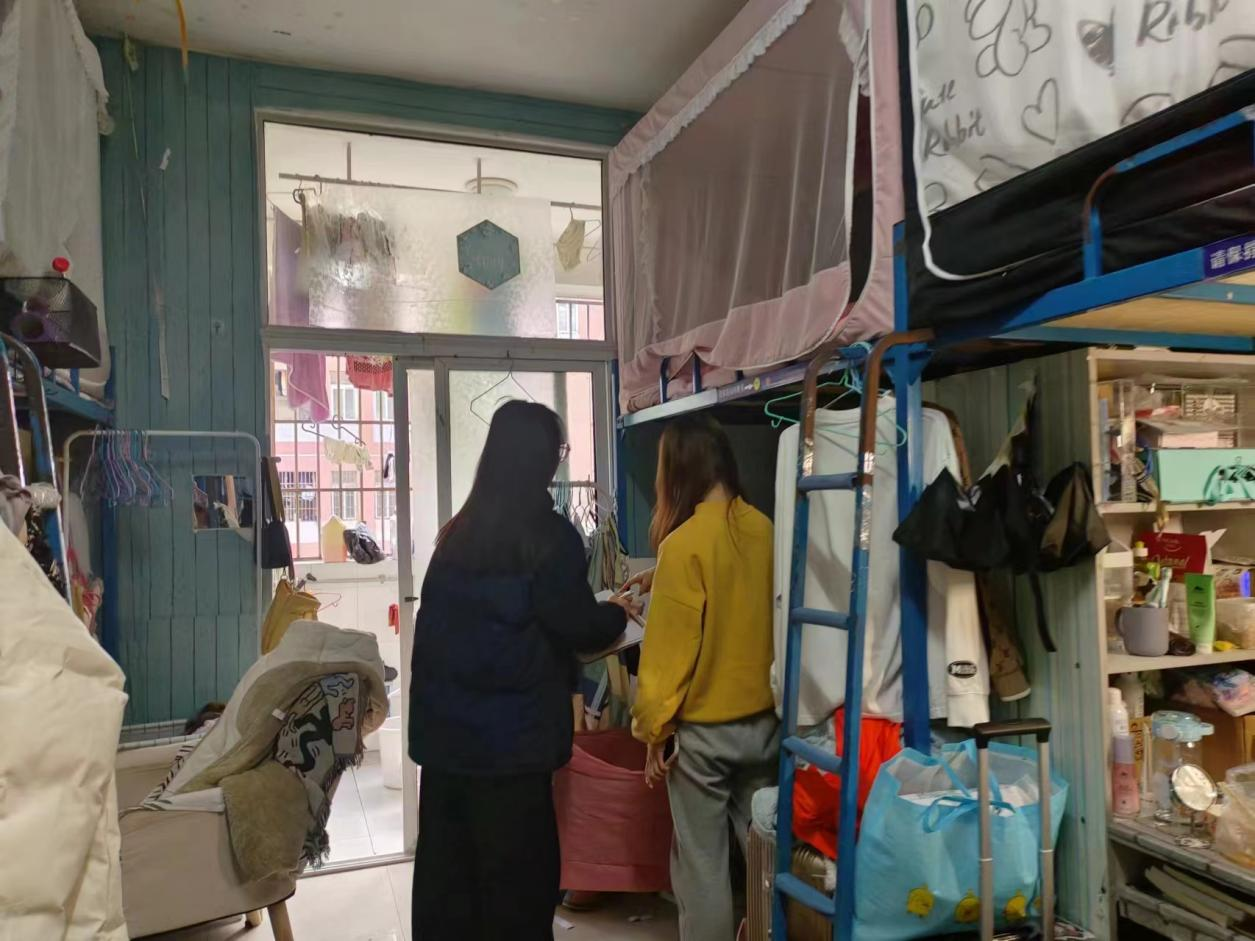 在排查过程中,学院安排了专人对每72间寝室进行仔细检查。工作人员逐一进入寝室,未发现寝室存在使用大功率电器的现象,在排查的过程中工作人员也对学生们进行了用电、用水安全教育。
