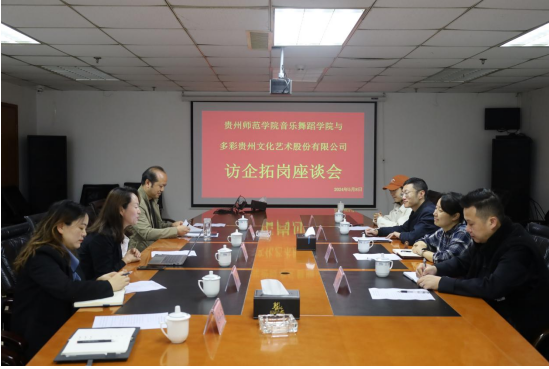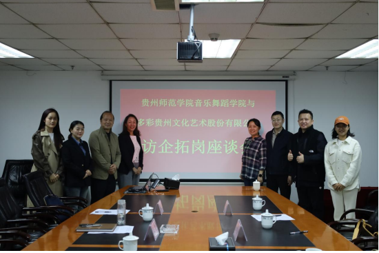 进一步深化校企合作,拓宽就业渠道,为学院人才培养提供更多实践和就业机会,5月8日,77779193永利官网集团党委书记李佩、党委副书记宋建强、舞蹈系主任肖伟、舞蹈系教研室主任黄河一行到多彩贵州文化股份有限公司开展访企拓岗并召开座谈会。