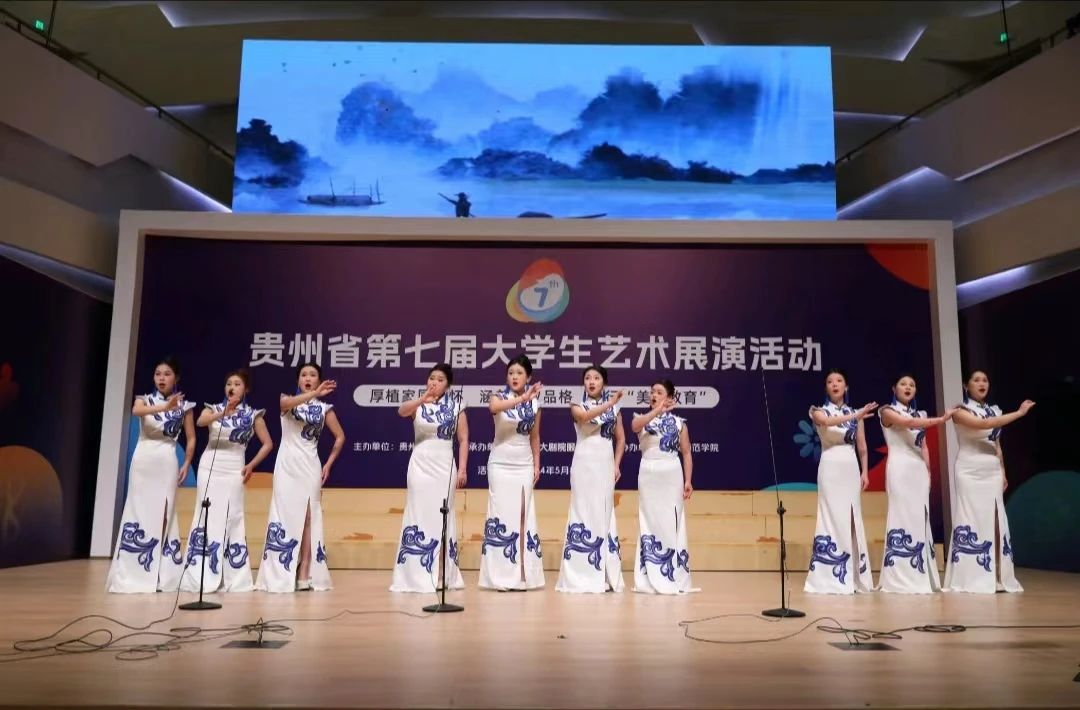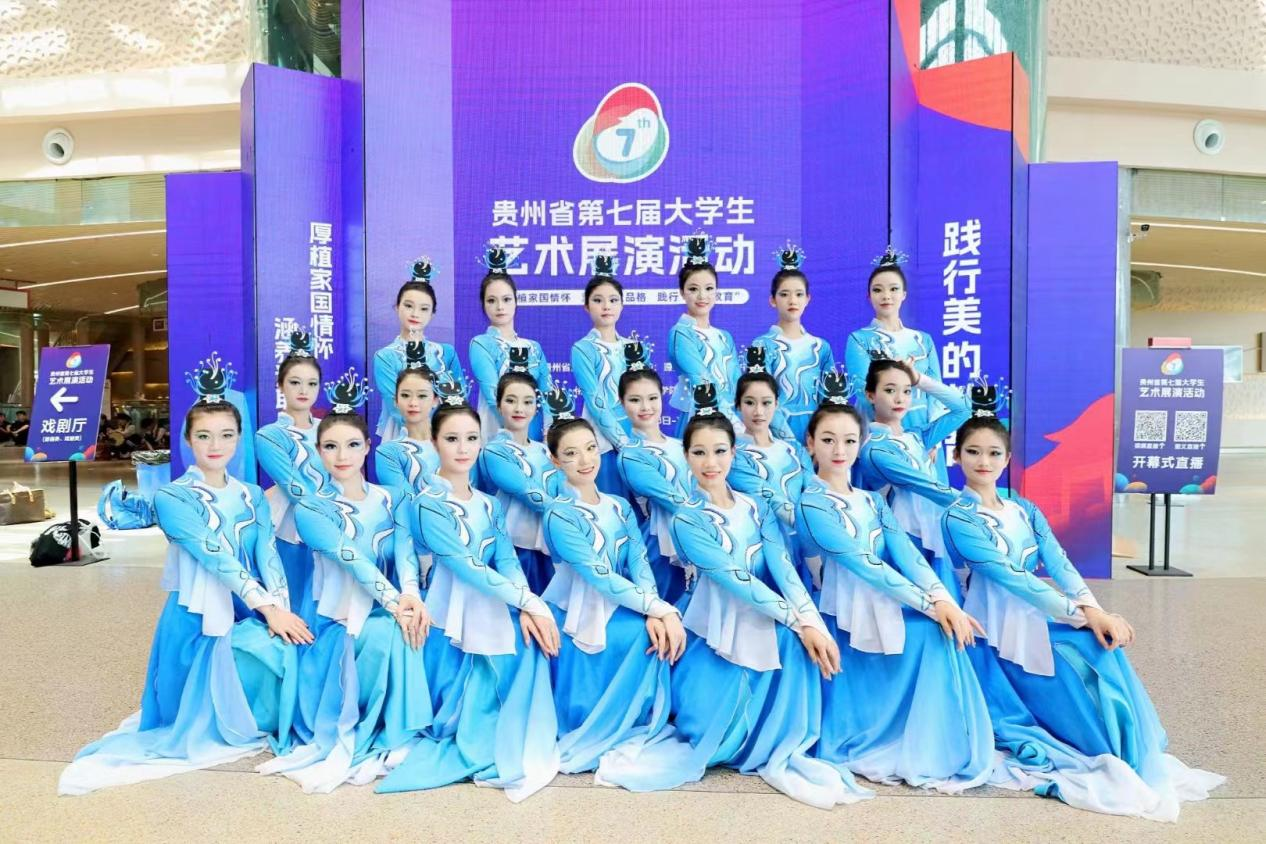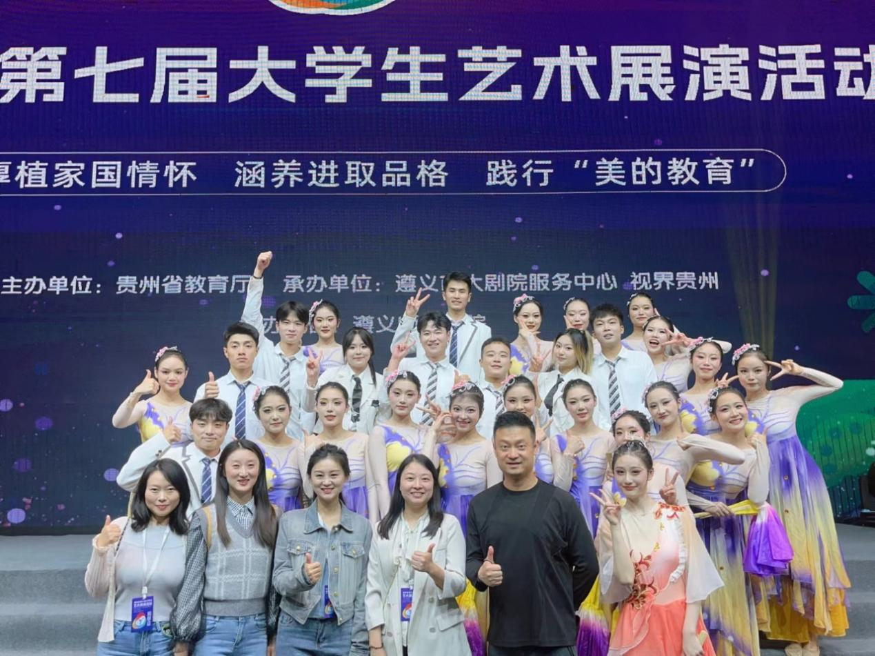 大学生艺术展演活动自2005年开始,每三年举办一届,是落实党中央、国务院全面加强和改进新时代学校美育工作要求展示高校艺术教育成果和大学生青春风采的艺术盛会,是全国目前规格最高、规模最大、影响最广的大学生艺术展演活动。2024年贵州省第七届大学生艺术展演活动于5月11日在遵义大剧院举行,通过获奖作品的选拔,来自我院的7个省赛艺术表演类作品受邀,一百余名师生赴遵义大剧院参加现场展演活动。
