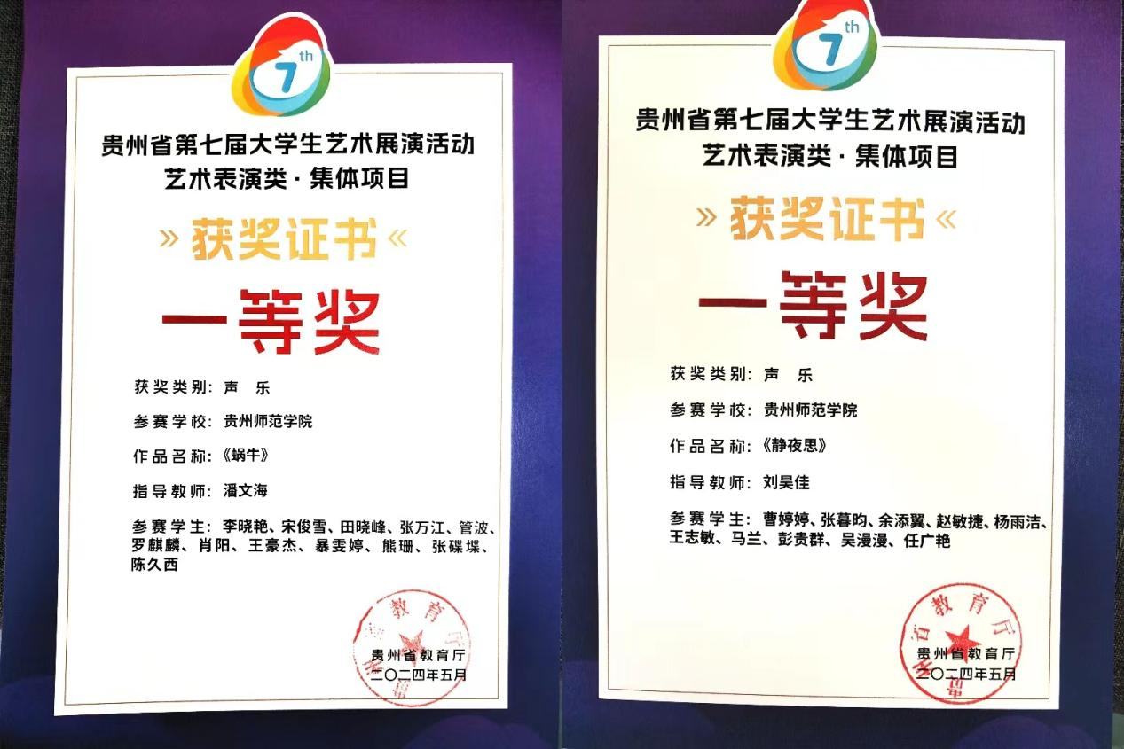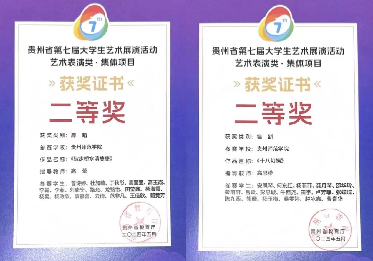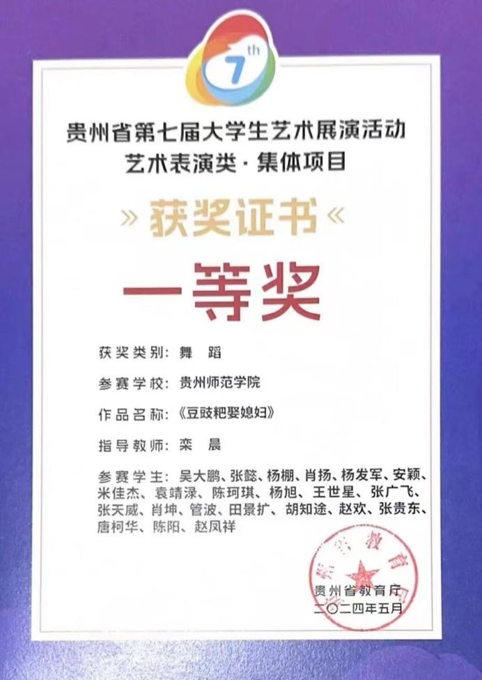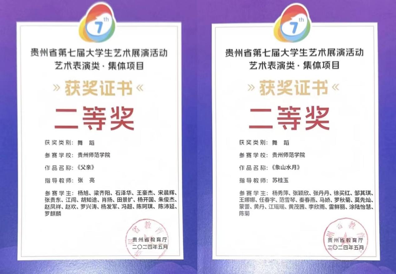 大学生艺术展演活动自2005年开始,每三年举办一届,是落实党中央、国务院全面加强和改进新时代学校美育工作要求展示高校艺术教育成果和大学生青春风采的艺术盛会,是全国目前规格最高、规模最大、影响最广的大学生艺术展演活动。2024年贵州省第七届大学生艺术展演活动于5月11日在遵义大剧院举行,通过获奖作品的选拔,来自我院的7个省赛艺术表演类作品受邀,一百余名师生赴遵义大剧院参加现场展演活动。