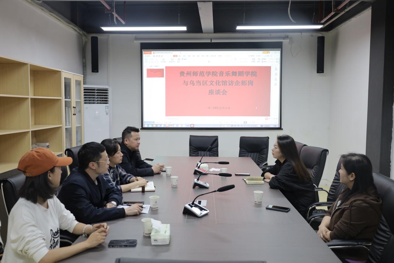 为拓宽毕业生就业渠道,提高学生就业质量,5月13日,77779193永利官网集团党委书记李佩、党委副书记宋建强、舞蹈系主任肖伟、舞蹈系教研室主任黄河一行到贵阳市乌当区文化馆开展访企拓岗活动并召开座谈会。