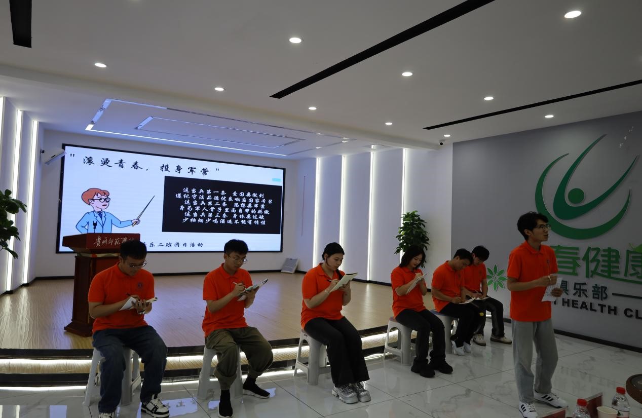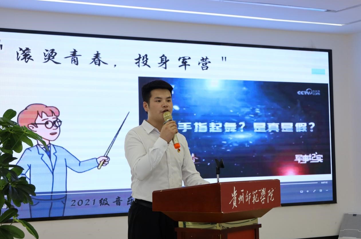 随着一段CCTV7对我院2020级音乐学专业入伍大学生刘钦军营纪实专访视频的插入,活动跳转至“青年大学习”主题场景。由支部学生党员、团员和青年们原创的歌曲《滚烫青春 投身军营》用新说唱的形式,普及了参军知识,开展了征兵动员,在场学生沉浸式感知到了参军的光荣和使命,并期待自己未来也能投身军营,登上为国效力的大舞台,继续发光发热。