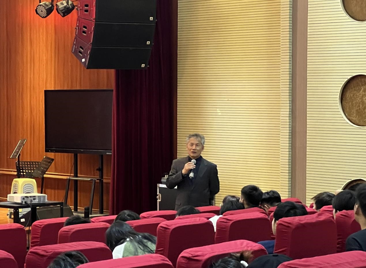 何春生首先分享了由他作词的《我们共同走来》《你们是最可爱的人》和以建党百年为主题的《希望》三首作品,详细介绍了作品的创作背景和灵感来源;接着,他开启与学生的互动讨论环节,鼓励同学们积极的提问并做一一进行了解答;最后,他对作曲家傅庚辰及其创作进行总结,认为傅庚辰的作品风格多样,既有深情款款的抒情曲,也有激昂澎湃的进行曲,他的作品不仅在国内广受欢迎,也在国际上赢得了声誉。