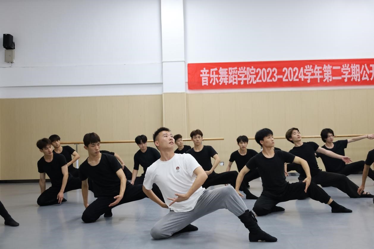 肖伟老师的《舞蹈基本功训练》课程则以控制组合和探海翻身组合为教学重点。他坚持理论与实践相结合的教学原则,在传授理论知识的同时,不断规范学生的舞蹈动作。在确保动作规范性的基础上,他进一步提升了学生的舞蹈流畅度与审美感受。