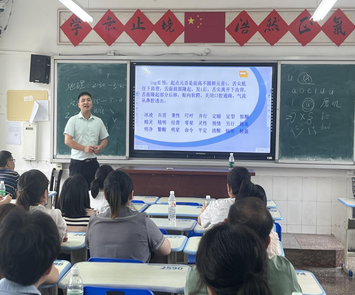 为期一天半的培训中,测试员专家老师分别就声母韵母的发音方法、声调以及语流音变、朗读与说话进行重难点分析与授课。全体参训教师全程认真听讲、积极发音,普通话水平均有了显著提升。