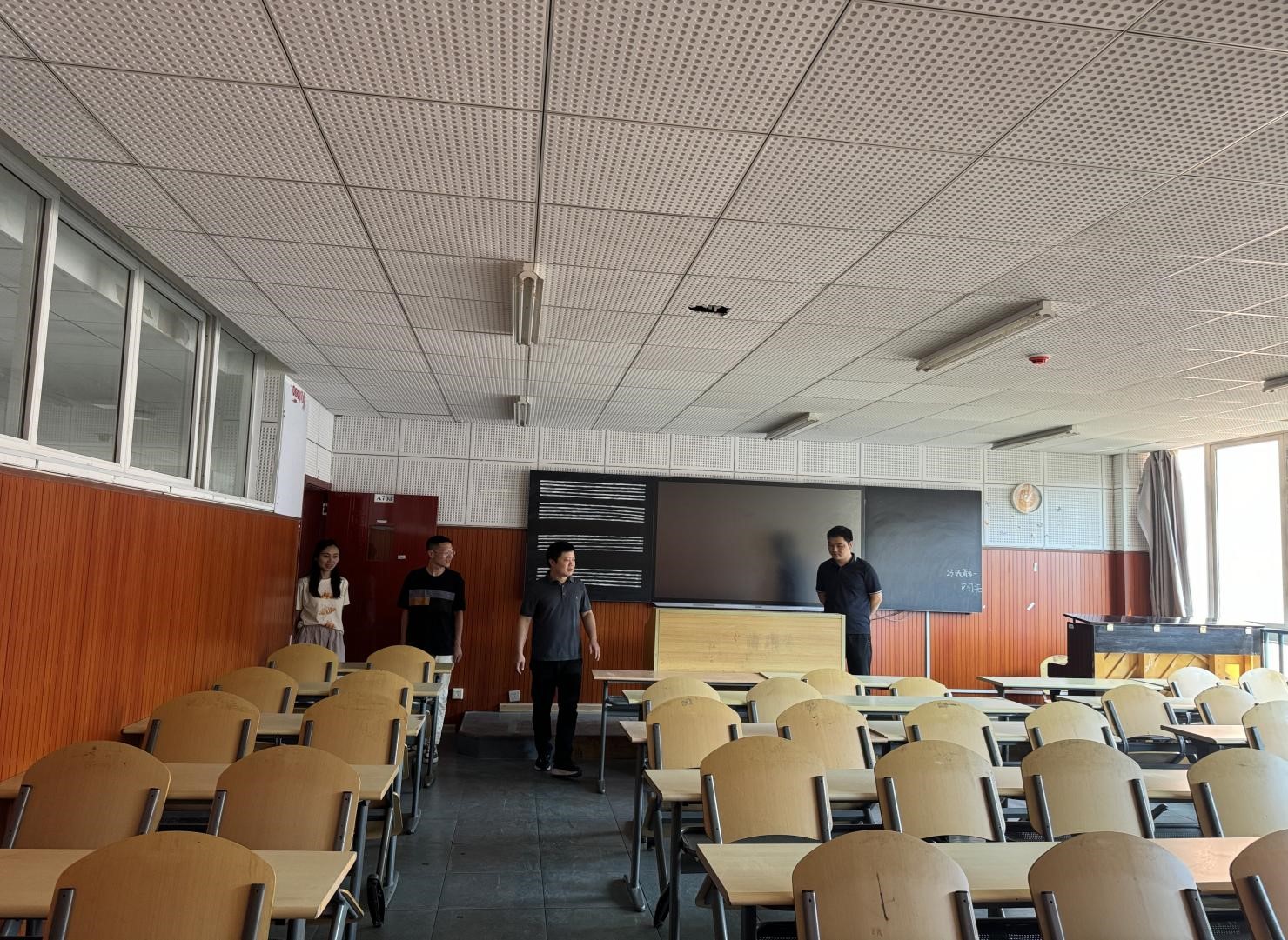 为进一步加强我院教学场所安全管理,有效防控安全风险,切实消除安全隐患,保障广大师生人身安全和校园稳定,全力做好开学准备工作,8月18日下午,由学院党委副书记宋建强、副院长王晓带队,教学管理科科长刘科,实验室负责人邹力征,学院教学督导王纪老师组成检查组,对学院所有实训室、教室及公共区域的安全及卫生情况进行了集中检查。