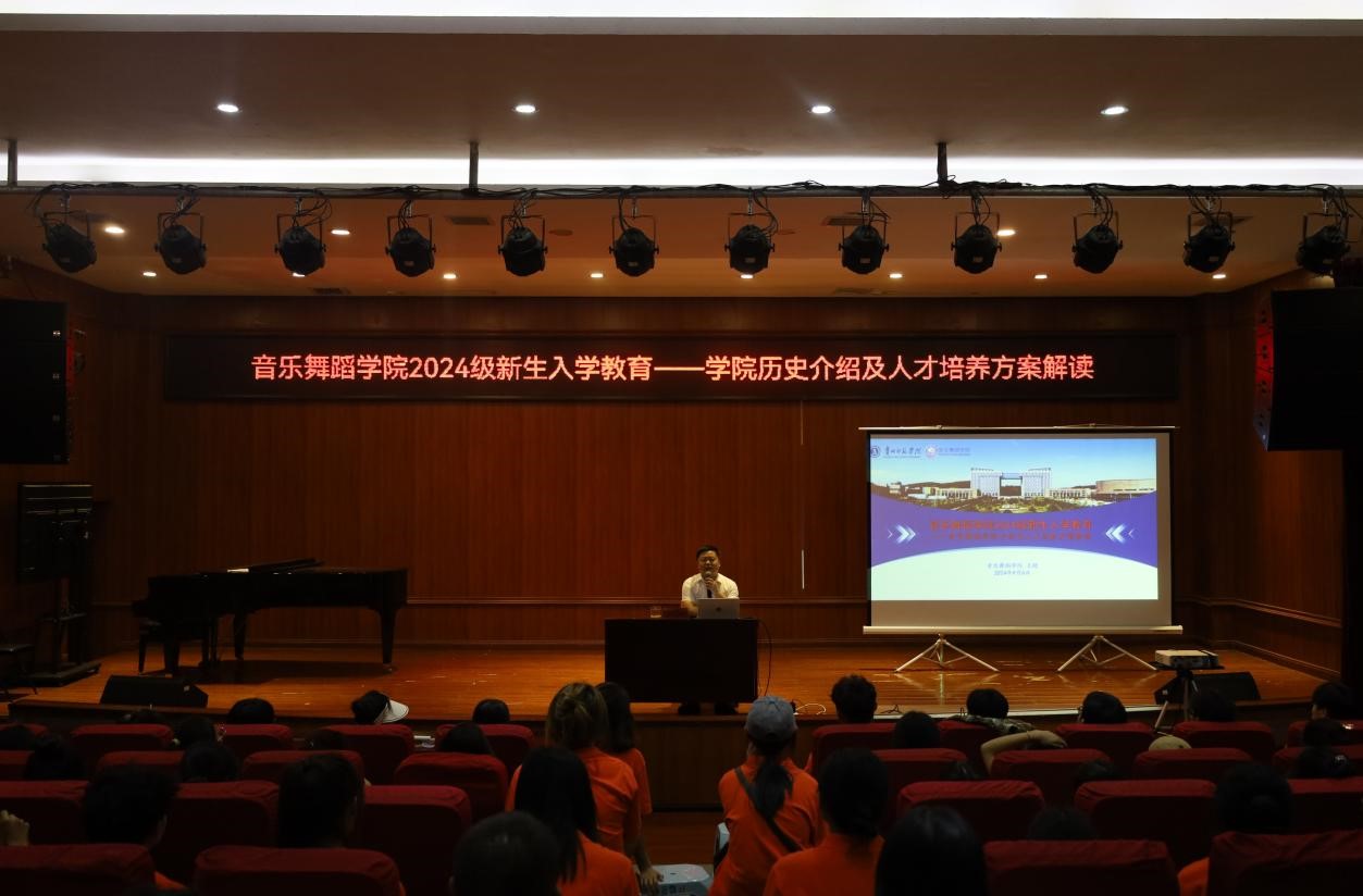 教学事务管理科科长刘科开展《教学常规知识介绍》讲座,使新生们对大学的学习、生活有了更清晰的认识。李金容老师开展《党团学生组织发展》讲座,她介绍了学院党、团学生组织的架构、活动内容和重要作用。音乐系主任刘昊佳、舞蹈系高蕾老师为新生介绍了专业的课程体系、师资力量、教学设施和就业前景等方面的内容。