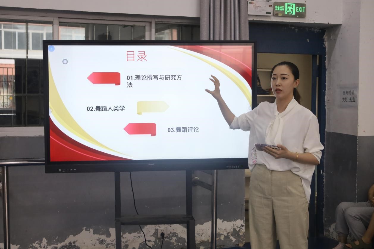 在教师教学分享环节,高思朦老师从理论研究方法、舞蹈人类学、舞蹈评论三个方面做了参加《中国民族舞蹈研究理论骨干人才培训》班的经验分享。龚卓老师分享了参加《共同体视域下民族地区基层编导人才培训》的收获与思考。高蕾老师分享了她参加《艺术教育指导》专题培训的学习经验,并请同学做了示范。最后,系主任肖伟对本次分享会进行了总结。