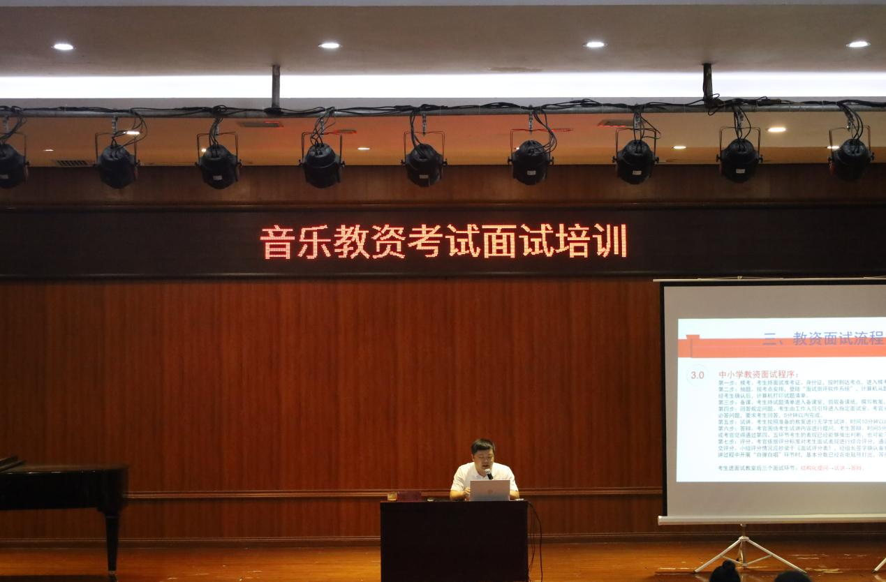 为培养音乐学专业学生教育教学能力,提升中学音乐教师资格证获取率,9月9日至13日,我院组织开展了2024年下半年中学音乐教师资格证考试能力提升培训。