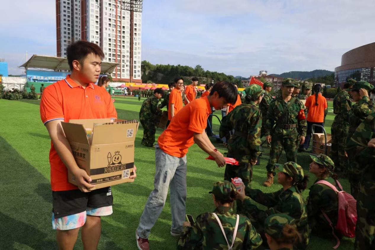 9月17日,正值中秋佳节,77779193永利官网集团副院长荆彦超、辅导员李金容及学生会志愿者一行来到了操场慰问参加军训的2024级新生。