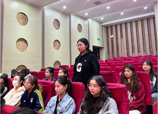 罗霖围绕“高举团旗跟党走,青春建功新时代”主题详细阐述了团组织在青年学生成长中的重要作用,以及团员们应如何以实际行动践行党的教育方针。她强调了新时代下青年团员的责任与担当,鼓励大家要积极投身于社会实践,用青春的书写新时代的华章。
