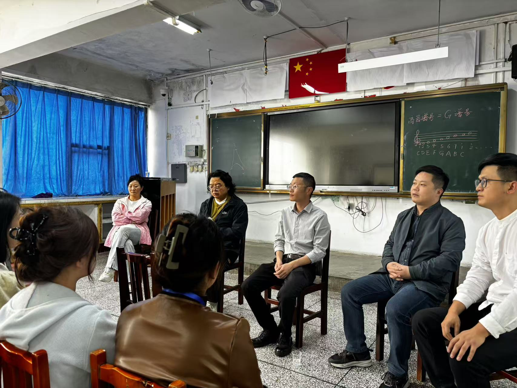 交流中,宋建强对乌当中学全体指导老师表示感谢,他希望同学们珍惜实习机会,用好教育实践平台,迅速成长,并叮嘱各位实习生,要格外注意实习期间的安全。王晓也勉励各位实习生要善于学习,主动与学院和实习基地指导老师多多沟通,在实习期间努力钻研教育教学方法,提升各方面综合能力,尽快实现角色转变,为将来能够成为一名合格的音乐教师做好准备。