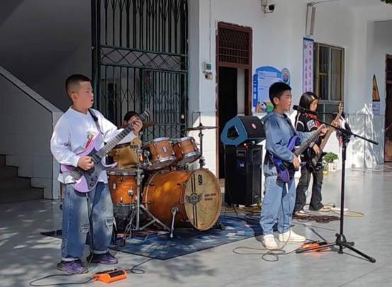 在乐队社团展示环节,大家观摩了大湾镇海嘎小学学生乐队——“海嘎少年”表演的精彩节目,聆听了大湾镇开化小学学生乐队和合唱团的精彩节目。