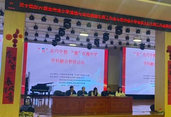 受贵州省小学音乐支红名师工作室邀请,我院名师工作室跟岗教师王晓、王铎、何文莉于5月11日下午参加由六盘水市教育局“三名”管理办公室主办,六盘水市钟山区第二实验小学、贵州省小学道德于法治康靖名师工作室、贵州省小学音乐支红名师工作室承办的“音”在巧中教 “德”在趣中学——学科融合教研活动。该活动在钟山区第二实验小学举行,活动采取集中研训,通过展示课、教学解构及对校本课程开发进行培训以及专家讲座。本次活动的开展将思政教育元素有机融入音乐教育教学,提升音乐教师思政素养,发挥音乐教育思政育人的作用。音乐教师还需注重职业道德素养提升,为人师表、言传身教,以高度的责任心和使命感传授音乐知识和音乐技能,身体力行引导学生树立正确审美观、价值观。
