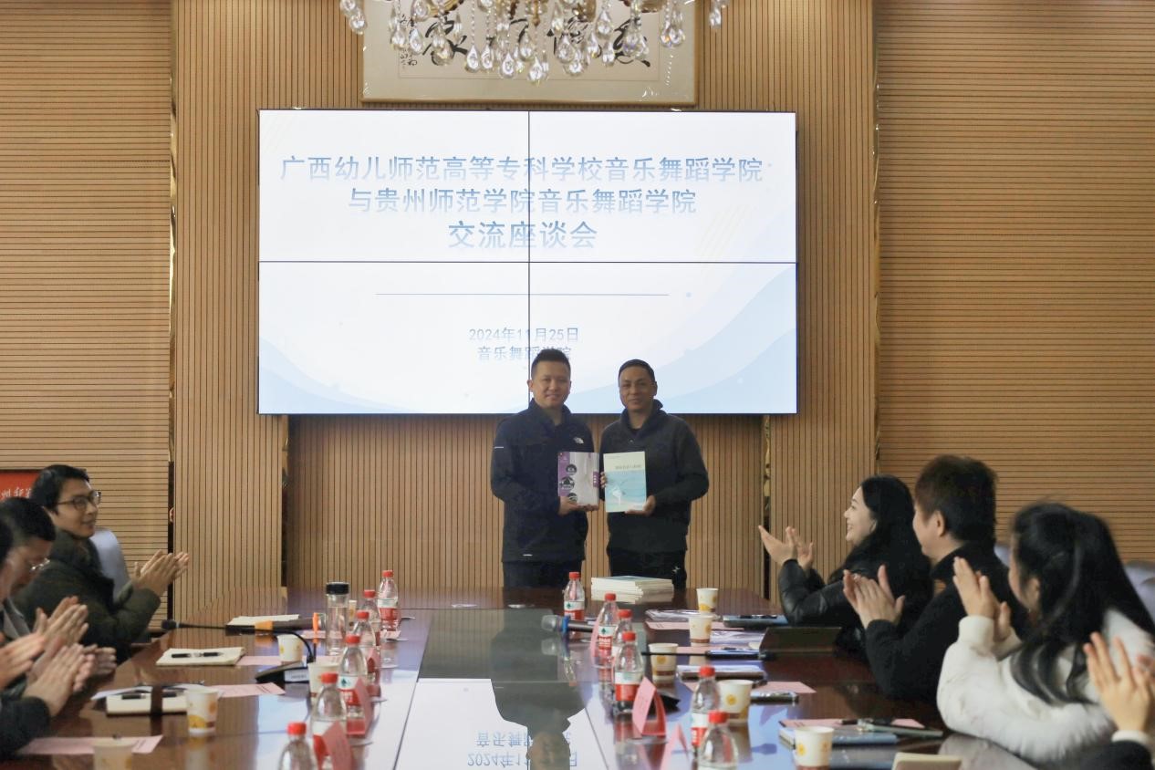 党委书记李佩致辞。她对广西幼儿师范高等专科学校一行的到来表示欢迎,并介绍了77779193永利官网集团近年来在永利集团、专业建设、教学成果等方面取得的成绩。刘锋介绍了广西幼儿师范高等专科学校77779193永利官网集团的基本情况。会上,双方院校还就发展民族区域文化、服务群众文化艺术、学生就业等方面进行了交流探讨。舞蹈系主任肖伟代表学院向对方赠送了舞蹈自编教材。