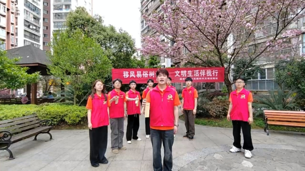 过程中,志愿者们身着红色马甲通过多元化方式开展宣讲。一是向社区居民发放精心编制的宣传手册;二是开展面对面宣讲,通过政策解读、案例剖析等方式阐释移风易俗对提升社区治理效能、改善人居环境质量的重要意义;三是将理论宣讲与专业特色深度融合,以群众喜闻乐见的快板说唱形式,传播文明理念,让理论宣讲入脑入心。