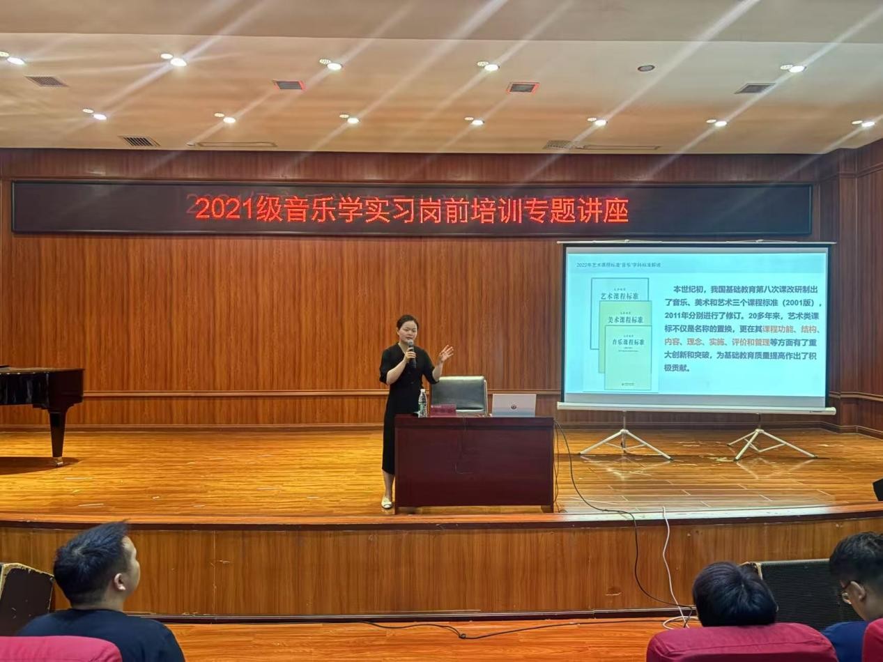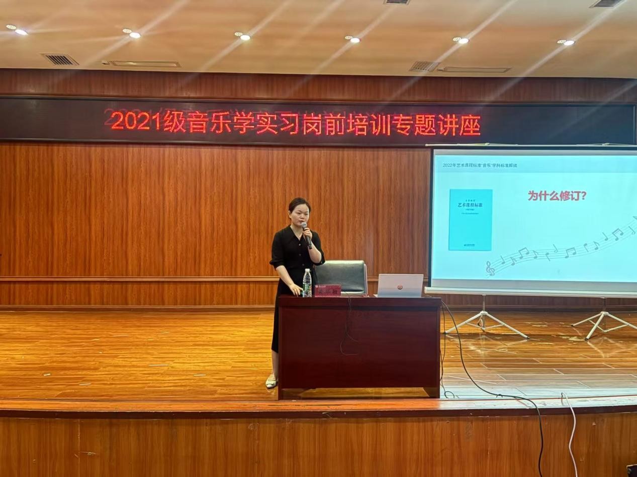 2024年6月13日,我院邀请到有着丰富一线教学经验的黄华敏老师为2021级音乐学专业学生开展了教育实习岗前培训专题讲座。