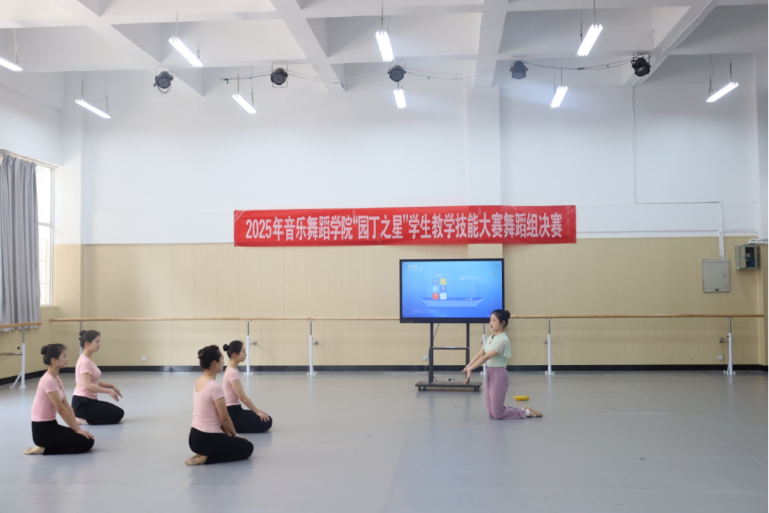 舞蹈组的决赛于17日上午在逸夫楼B005舞蹈实训室精彩启幕。比赛现场,来自舞蹈学、舞蹈表演班的参赛选手们精神饱满,各展所能。他们以扎实的舞蹈功底、富有创意的教学展示,呈现了一堂堂精彩的舞蹈教学片段。有的选手在基本功教学中,精准示范,耐心讲解,将舞蹈动作的要领细致剖析;有的选手则在组合编排教学里,融入独特的艺术构思,让舞蹈教学充满趣味性与创造性。舞蹈系教师组成评审组,从教学内容、教学方法、专业技能、舞台表现等多个维度进行综合考量,严格评审。经过激烈角逐,最终评选出了表现卓越的选手,他们将成为未来舞蹈教育领域的新生力量。