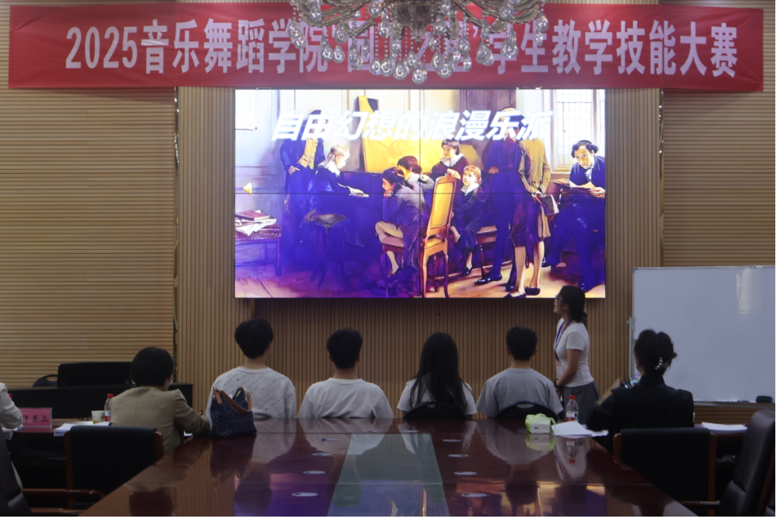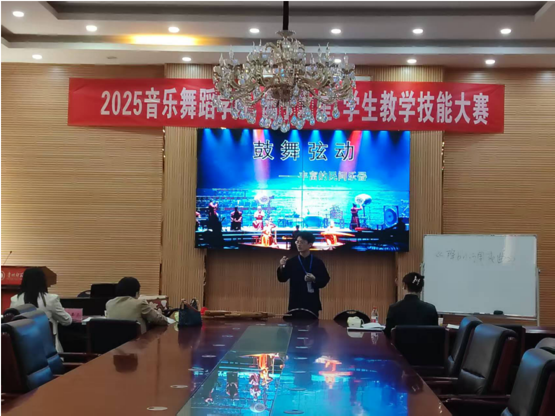 在紧张而有序的比赛中,选手们充分展示了自己的高中音乐课教学能力和创新能力。他们凭借歌曲演唱、乐器演奏等丰富多彩的形式,充分展现了扎实的教学基本功,且在互动环节中,与学生默契配合,共同营造了一个轻松愉悦的课堂氛围,既彰显了卓越的教学技能,又流露出对音乐教育的满腔热忱。在赛后评委点评环节,对同学们在比赛中展示的亮点予以肯定,对参赛选手们在课堂教学中存在的不足予以指正。所有参赛选手和部分指导教师观摩了比赛及赛后点评,大家感到受益匪浅。同学们一致表示,今后会更加努力钻研教育教学方法,不断提升教育教学能力,为在将来能够成为一名优秀的音乐教师而不懈努力。