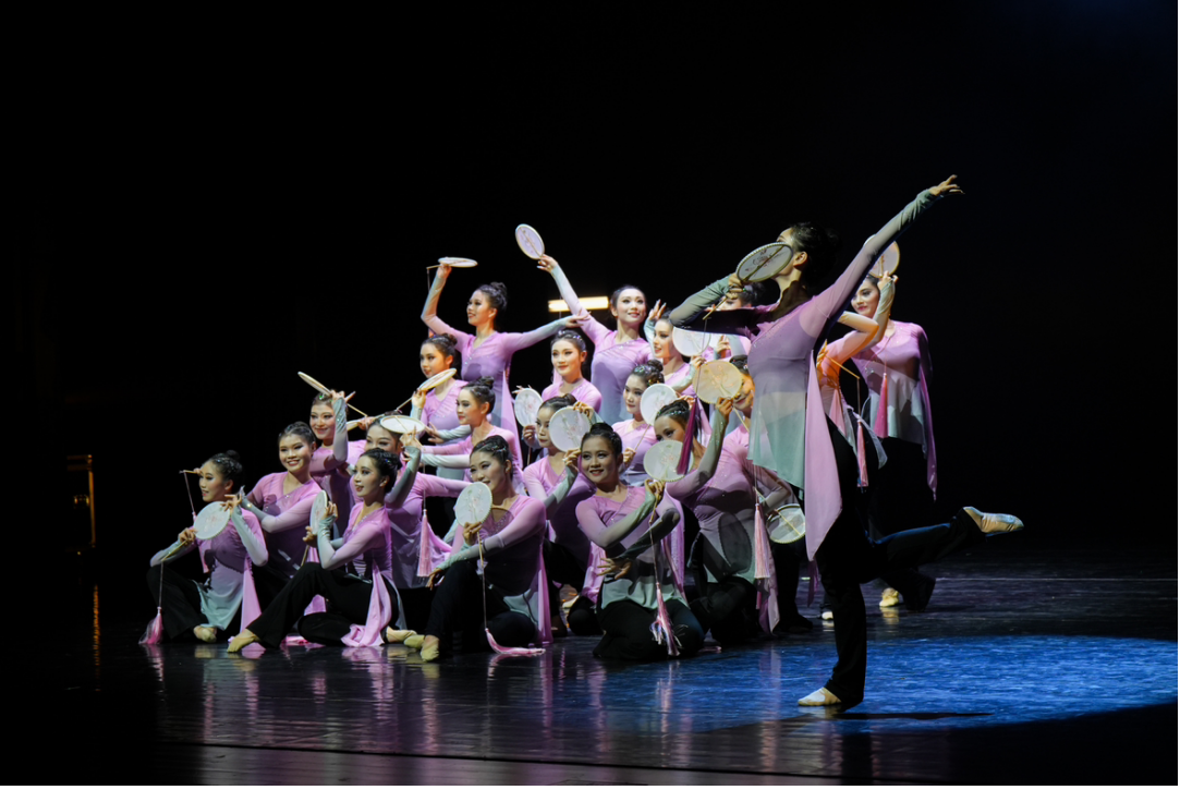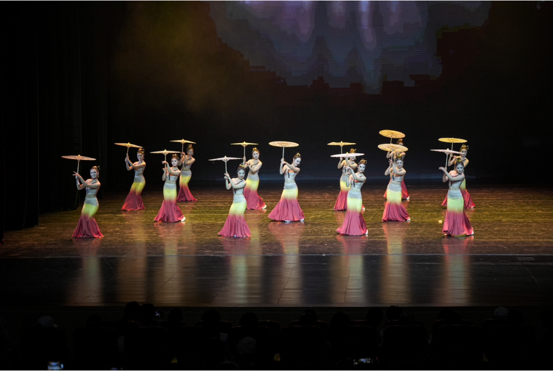 在第一篇章“萌芽・初绽放” 中,现代舞组合以灵动的身姿、富有张力的动作,展现出青春的活力与对舞蹈艺术的探索;古典舞团扇组合,舞者们手持团扇,轻盈起舞,扇影摇曳间,尽显古典舞的优雅韵味;双人舞技术展示中,舞者之间默契配合,用肢体语言诉说着细腻的情感;古典舞技术技巧组合更是将高难度的舞蹈技巧完美呈现,赢得现场阵阵掌声。