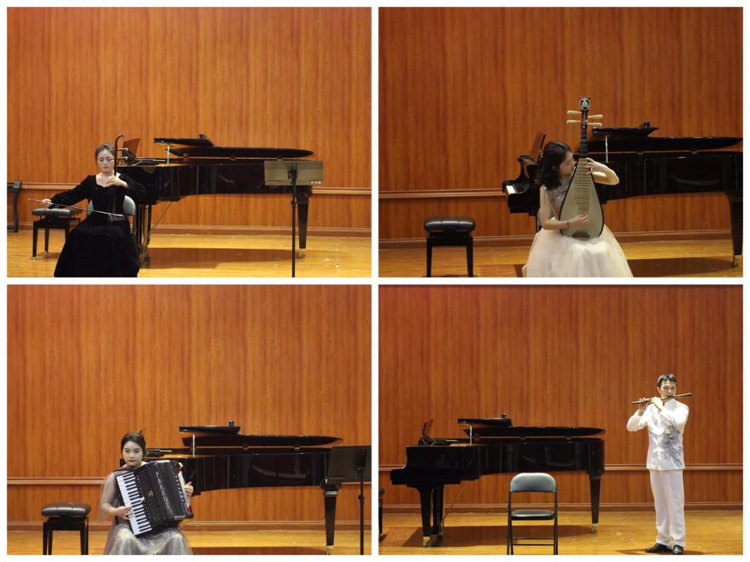 2.声乐演唱、钢琴演奏、器乐演奏考核中,学生们精心选曲、用心演绎,以扎实的基本功、饱满的情感表达展现专业实力,评委针对发声技巧、指法控制、乐感呈现等细节给予专业指导;
