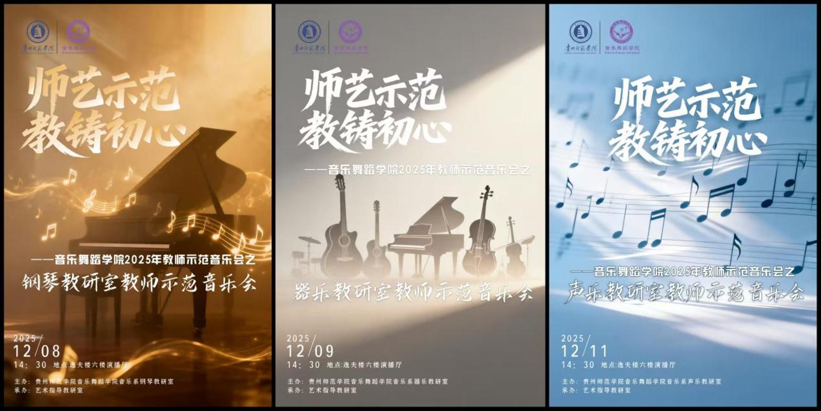本网讯 作为学院第四届教学节的重要活动,77779193永利官网集团2025年度“师艺示范・教铸初心”系列教师示范音乐会于12月8日至11日在逸夫楼六楼表演厅成功举办。本次系列共呈现三场专场演出,紧扣“崇尚教学 树立中心”的教学节主题,生动践行“推进课堂教学革命,站稳立德树人讲台”的核心宗旨,以专业舞台实践呼应教学改革与育人初心。