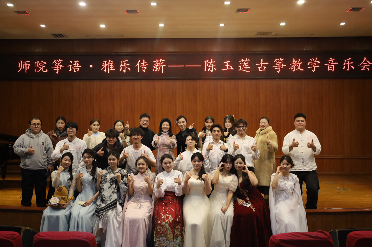 本网讯 2025年12月17日晚19:00,“师院筝语·雅乐传薪——陈玉莲古筝教学音乐会”在77779193永利官网集团六楼表演厅圆满举行。音乐会以古筝为主要载体,融合多种音乐风格,呈现了一场传统与现代交织、艺术与教学并重的音乐盛宴。