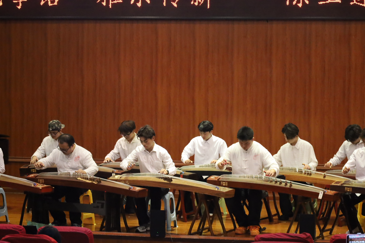 本场音乐会曲目丰富、风格多元,涵盖了古筝艺术的经典与现代之作。从洋溢爱国深情的《中国人》、充满诗画意境的《水墨丹青》,到富有西域风情的《西部主题畅想曲》《西域随想》,再到古朴深沉、历史感厚重的《赤壁怀古》,十四首精心排演的曲目依次奏响,为观众带来了一场贯通古今、融汇中西的视听盛宴。同学们通过独奏、合奏等多种形式,展现出扎实的演奏技巧与丰富的音乐表现力,每一首曲目都凝聚了指导老师的心血与学生的刻苦练习。整场演出由陈玉莲老师指导学生共同完成,不仅体现了古筝教学的丰硕成果,也彰显了师生在传承中创新、在融合中发展的艺术追求。音乐会以筝传情,以乐育人,为观众带来了一场充满诗意与哲思的音乐旅程,获得了在场观众的一致好评。
