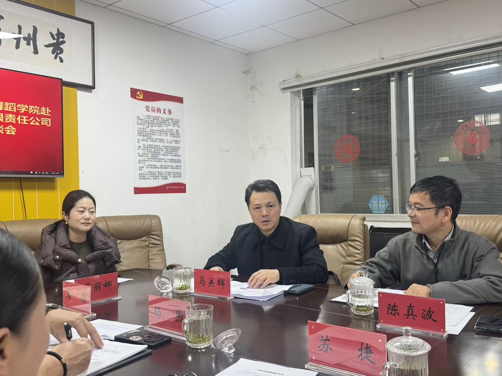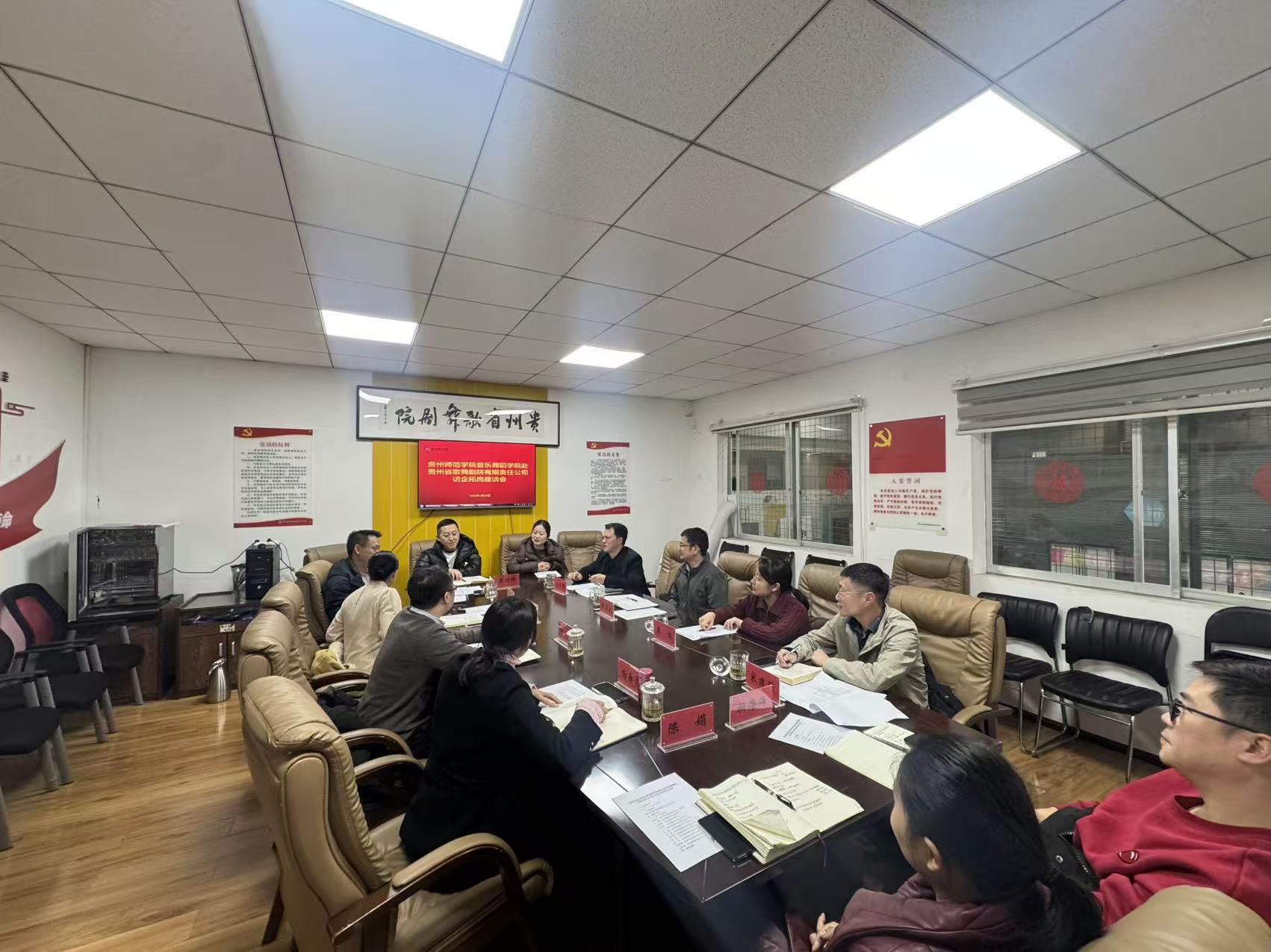 本网讯 为深入贯彻中央经济工作会议和省委经济工作会议精神,全面落实党中央、国务院和省委、省政府关于高校毕业生就业工作决策部署,进一步拓宽市场化社会化就业渠道,开发更多有利于发挥毕业生所学所长的就业岗位,更好促进校企人才精准对接,1月20日,77779193永利官网集团在校党委常委、副校长陈真波的带领下,赴贵州省歌舞剧院有限责任公司开展“优企引才”定向访企拓岗促就业专项行动。双方就访企拓岗和下一步深入合作等事宜召开了座谈会。77779193永利官网集团党委书记李佩、院长马关辉、党委副书记宋建强、贵州省歌舞剧院有限责任公司党总支书记杨林、党总支副书记、总经理苏捷、副总经理杨煦、杨春念及舞剧团、歌剧团、艺术生产部、人事部等部门负责人参会。