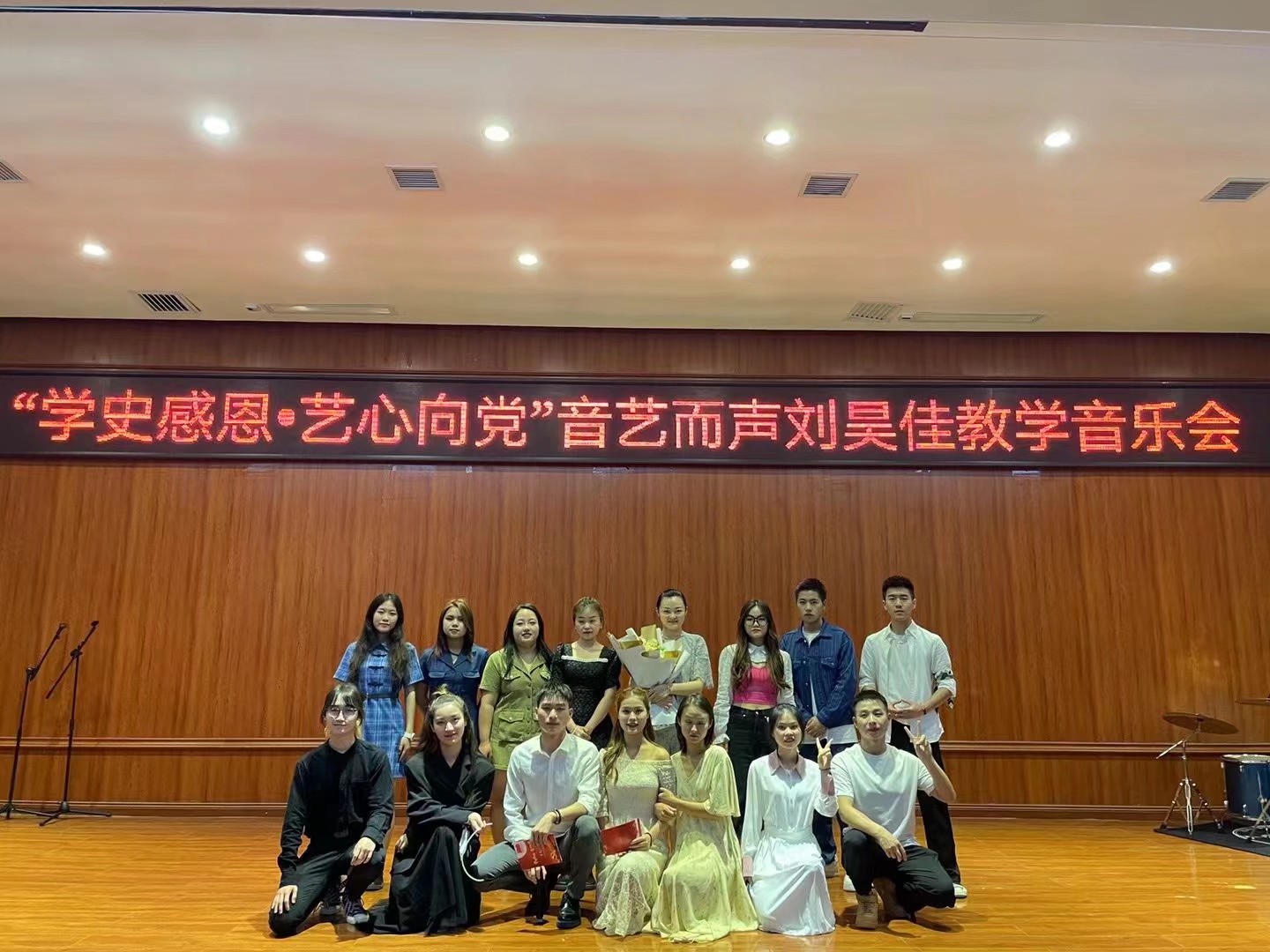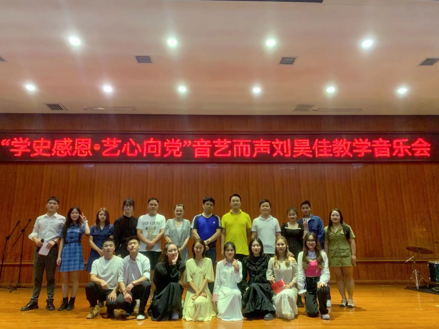 6月16日晚七点,77779193永利官网集团在六楼音乐厅举办主题为“学史·感恩 ‘艺’心向党”——音艺而声刘昊佳教学音乐会暨音乐系学生党支部观摩学习活动。音乐系全体老师、流行组全体学生及音乐系学生党支部的全体学生党员参加了此次活动。