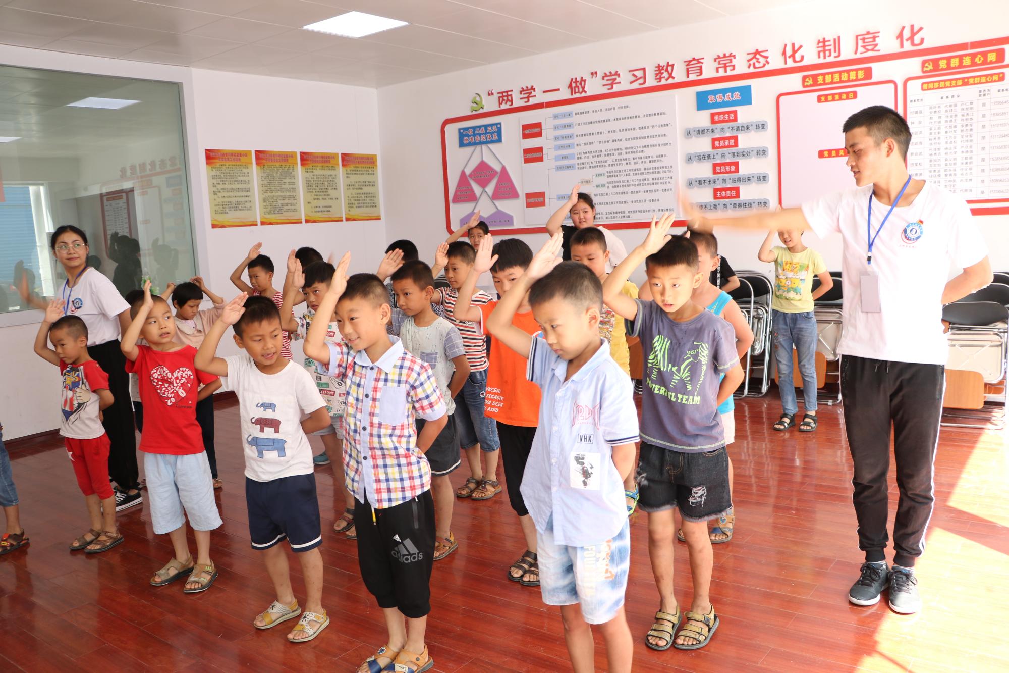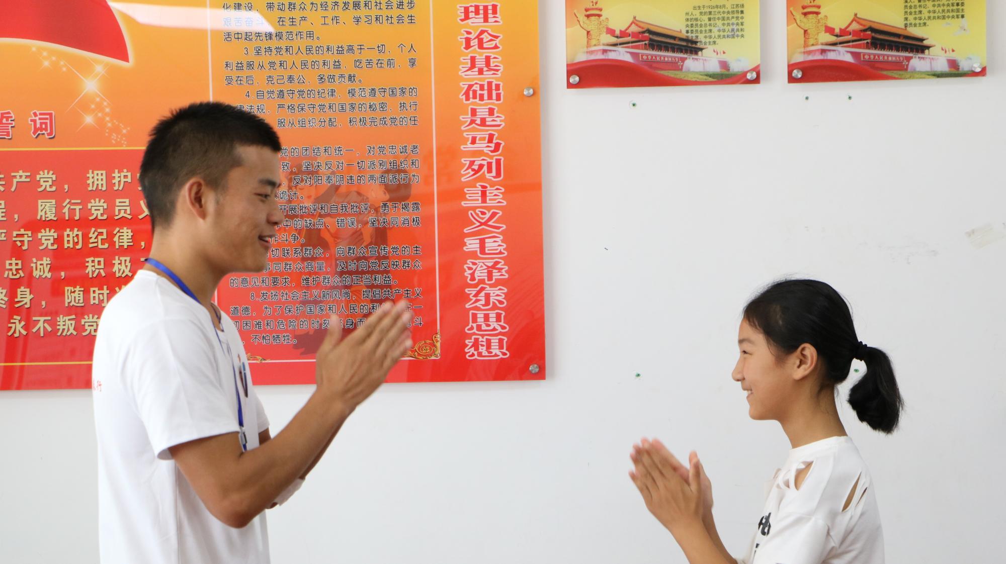 支教课程在舞蹈组殷龙、王莲所带领的《小鸡啄米》中拉开帷幕,第一次接触舞蹈的小男孩们一开始都很腼腆羞涩,但后来大家渐渐融入习舞氛围,认真仔细的模仿着老师的动作,并表示不会落后于女生,现场气氛活跃。