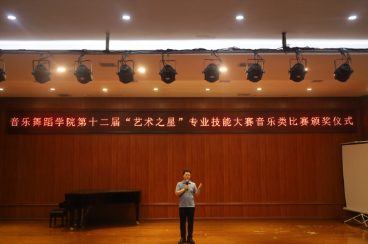 经过初赛、复赛和决赛的多轮比拼,各组别获奖名单尘埃落定。决赛结束后,学院为获奖选手举办了颁奖典礼。颁奖仪式上,学院领导为获奖选手颁发获奖证书。在总结讲话中,马关辉院长希望大家以本次比赛的获奖选手为榜样,学习他们对艺术的热爱、对专业的执着、对自我的超越,他勉励同学们在未来的学习中,要保持积极进取的态度,不断提升专业技能与艺术修养,用汗水与努力浇灌艺术之花,在属于自己的舞台上绽放更加耀眼的光芒!