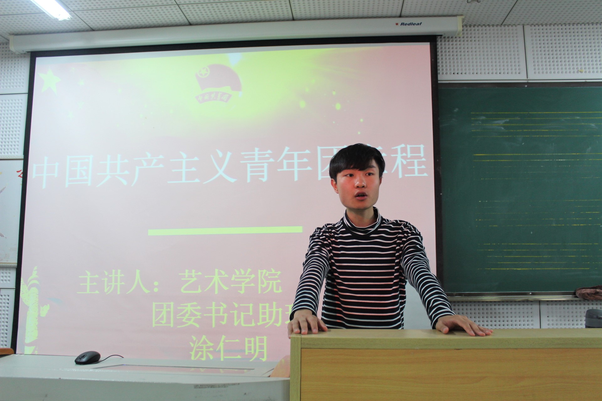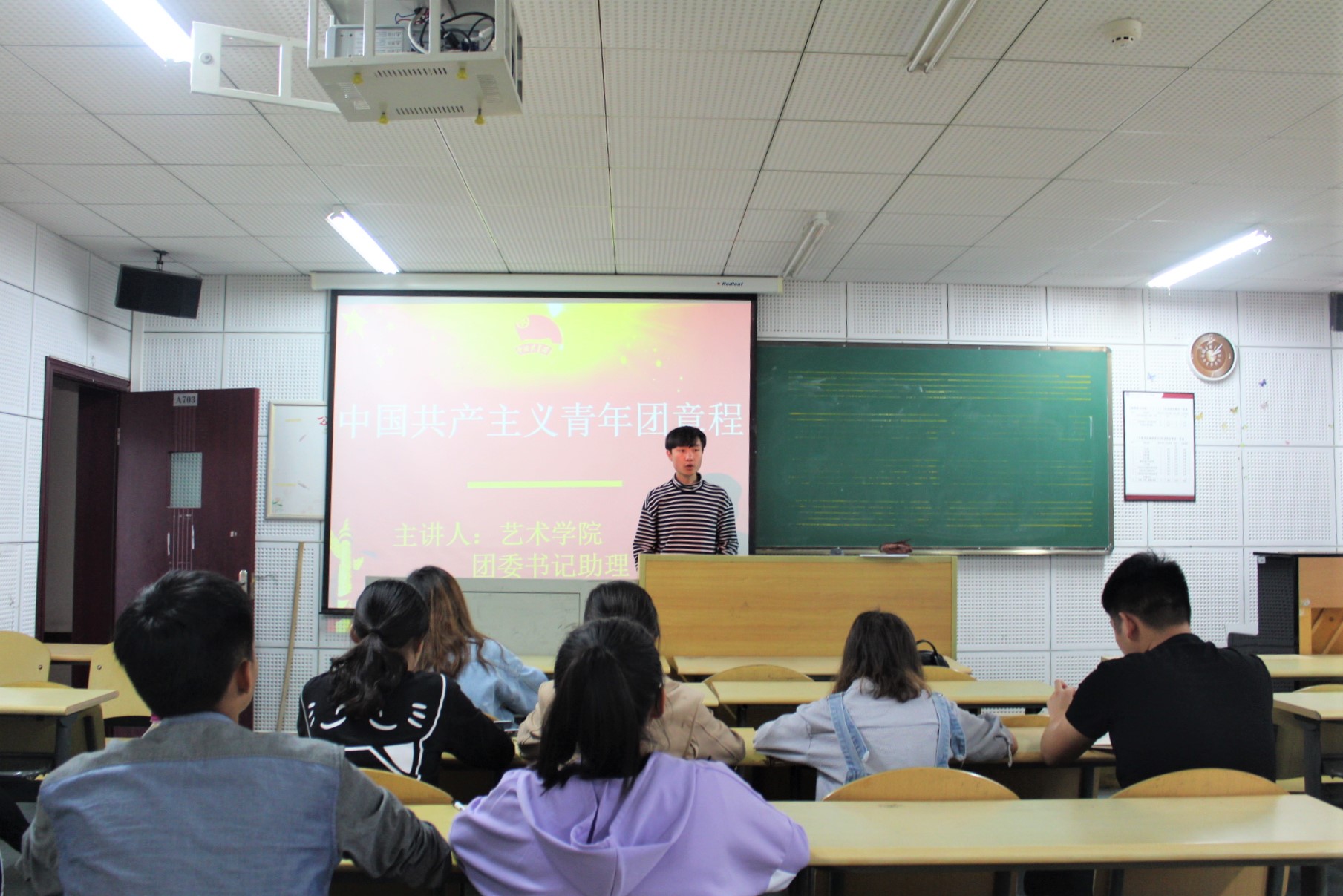 为加强对团员的培养和教育力度,提高团员对团章的认识,5月31日中午,艺术学院团委书记助理涂仁明在逸夫楼B703召开了“学习中国共产主义青年团章程”主题团课,2018年新团员发展对象参加了本次讲座。