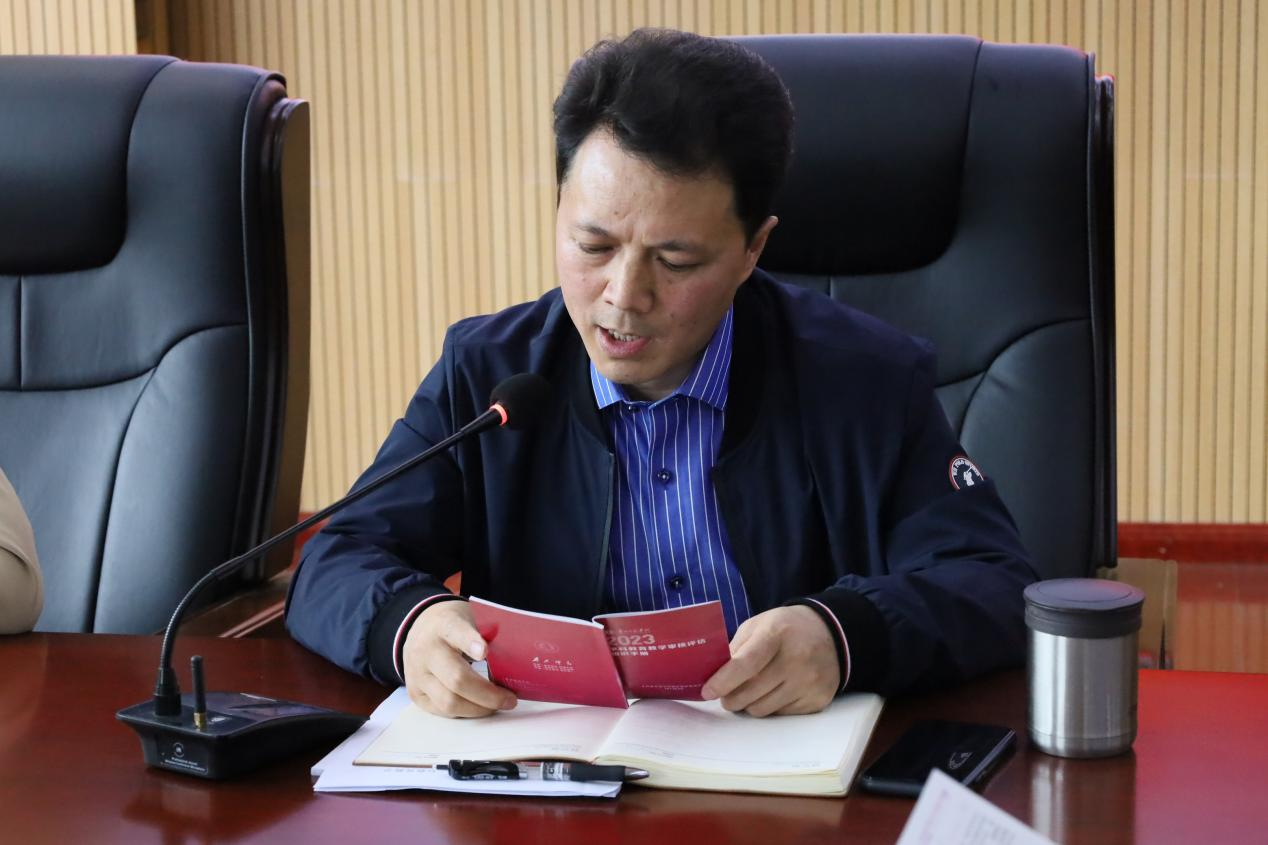 接着,院长马关辉传达了学校审核评估会议的精神,并对学院线上评估的迎评工作做了具体的安排。学院党委书记李佩组织全院教师学习了本科教育教学审核评估知识,学习以每位老师领学一部分的方式进行。