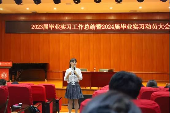 4月19日上午,学院在六楼音乐表演厅召开2023届毕业实习工作总结