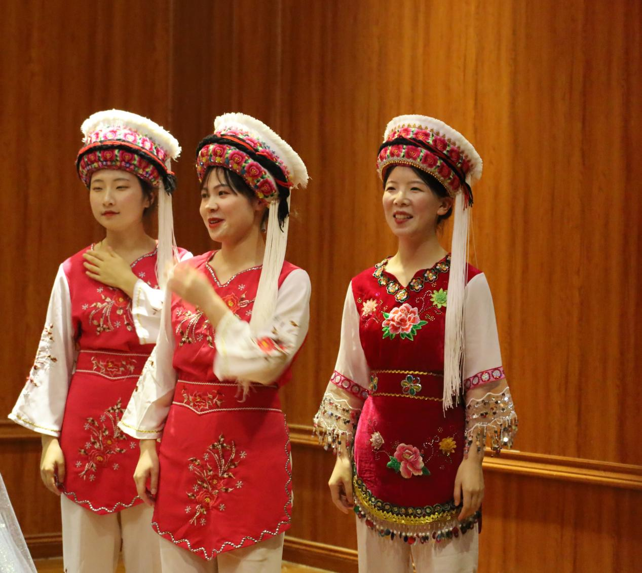 音乐会由新疆民歌串烧拉开序幕,同学们演唱了《阿瓦尔古丽》《玛依拉》《一杯美酒》《曲蔓地》《思恋》《鸿雁》,紧接着,云、贵、川西南三省的传统民歌《情姐下河洗衣裳》《婚誓》《摘菜调》《醉苗乡》等轮番登场向观众展现了一幅极具西南风情与民族特色的画卷。最后一个板块是北方民族民歌,一曲《敕勒歌》唱出了北国草原壮丽富饶的风光,音乐会在《爱我中华》大合唱中落下帷幕。