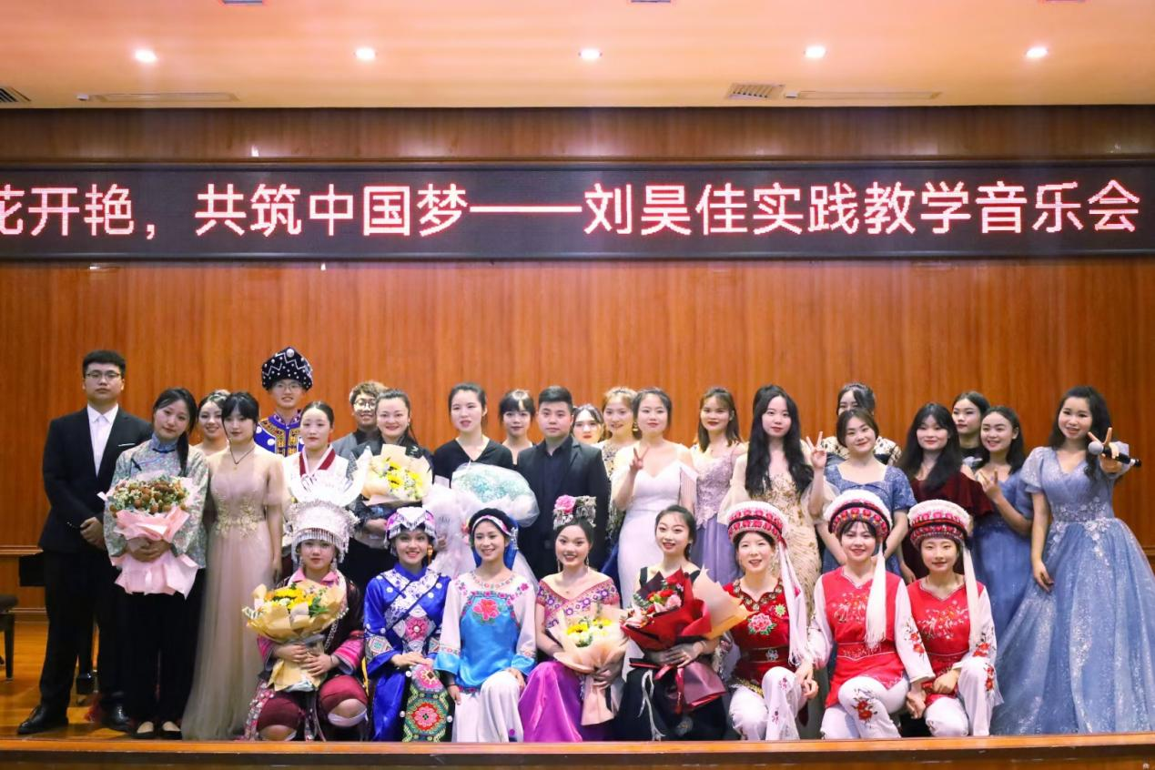 为深入探索高师音乐学专业课程思政实施策略,6月16日晚,“民族花开艳,共筑中国梦”——刘昊佳实践教学音乐会在表演厅举行。指导教师刘昊佳老师以及各班学生观看了此次音乐会。音乐会由陈礼森、邓倩主持。李菁、张俊老师担任音乐会伴奏。