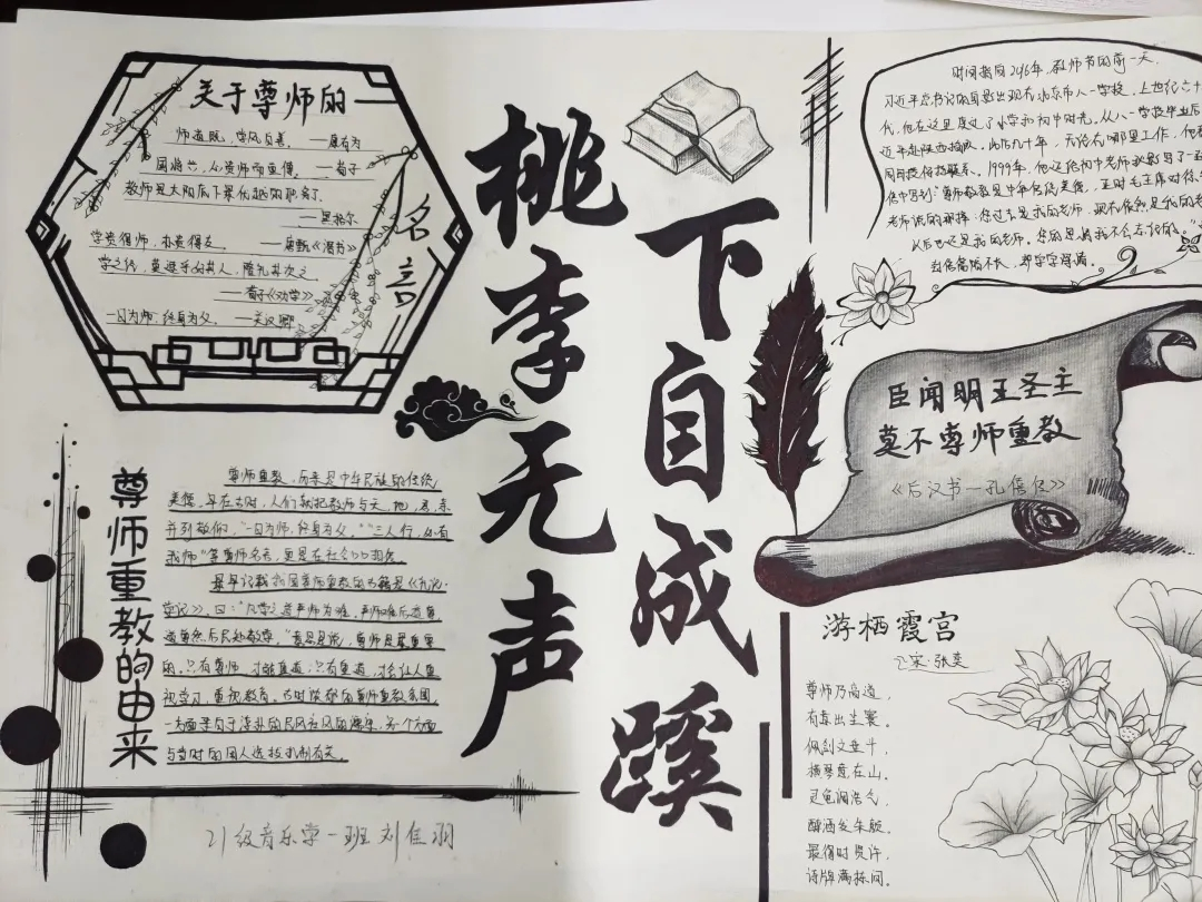 本次活动以“感谢那些年,老师陪我们一起走过”为主题。手抄报通过学生精心编排、设计,板式新颖多样,主题鲜明,字迹工整清晰,色彩纷呈,以丰富的语言文字和插图,创作出一幅幅内容紧紧围绕感恩教师这一主题的手抄报,字里行间无不透露出对老师的崇敬与爱戴,为敬爱的老师们献上一份珍贵的礼物。