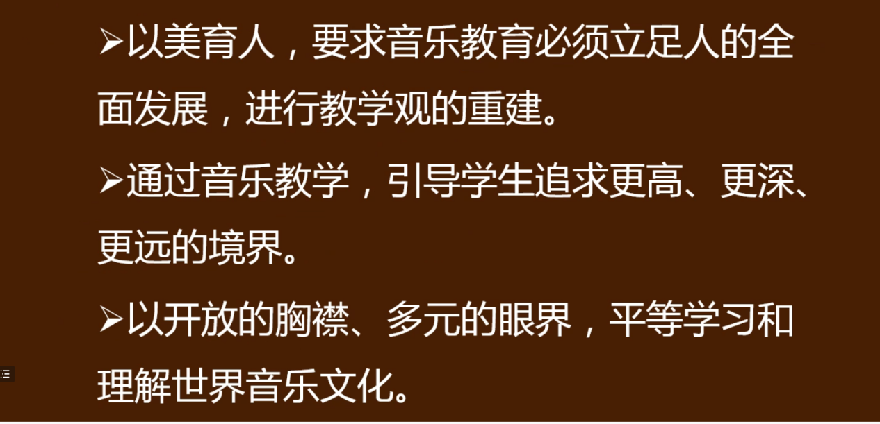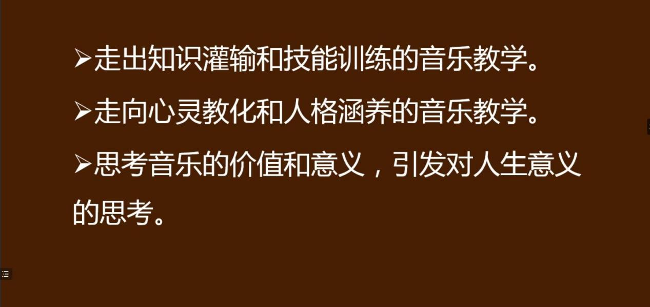 本次线上授课,尚建科老师围绕音乐教学观、教学关系和音乐学习活动三个方面展开。他指出,音乐学科是中小学实施以美育人的重要途径,作为当代一线教师,我们应该要走出知识灌输和技能训练的音乐教学,走向心灵教化和人格涵养的音乐教学,引导学生学会思考音乐的价值和意义,从而达到教学目的;其次,他强调,教学应坚持以学生为中心,将权利交给学生,构建以学生活动为主的音乐课堂常态,使学生成为音乐的主人,从中感受音乐的魅力,从而有利于激发学生全面的音乐潜能;最后,他表示,以美育人要求音乐教育必须立足人的全面发展,进行教学观的重建,通过音乐教学,引导学生追求更高、更深、更远的境界。