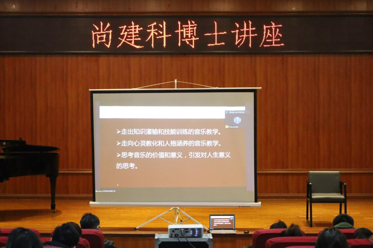 2021年12月4日上午,“国培计划(2021)”五育并举融合育人培训项目(小学音乐)在音乐舞蹈系学院演播厅举办了《音乐教学法的理论与实践》线上主题讲座,本次讲座由陕西师范大学副教授、尚建科博士主讲。