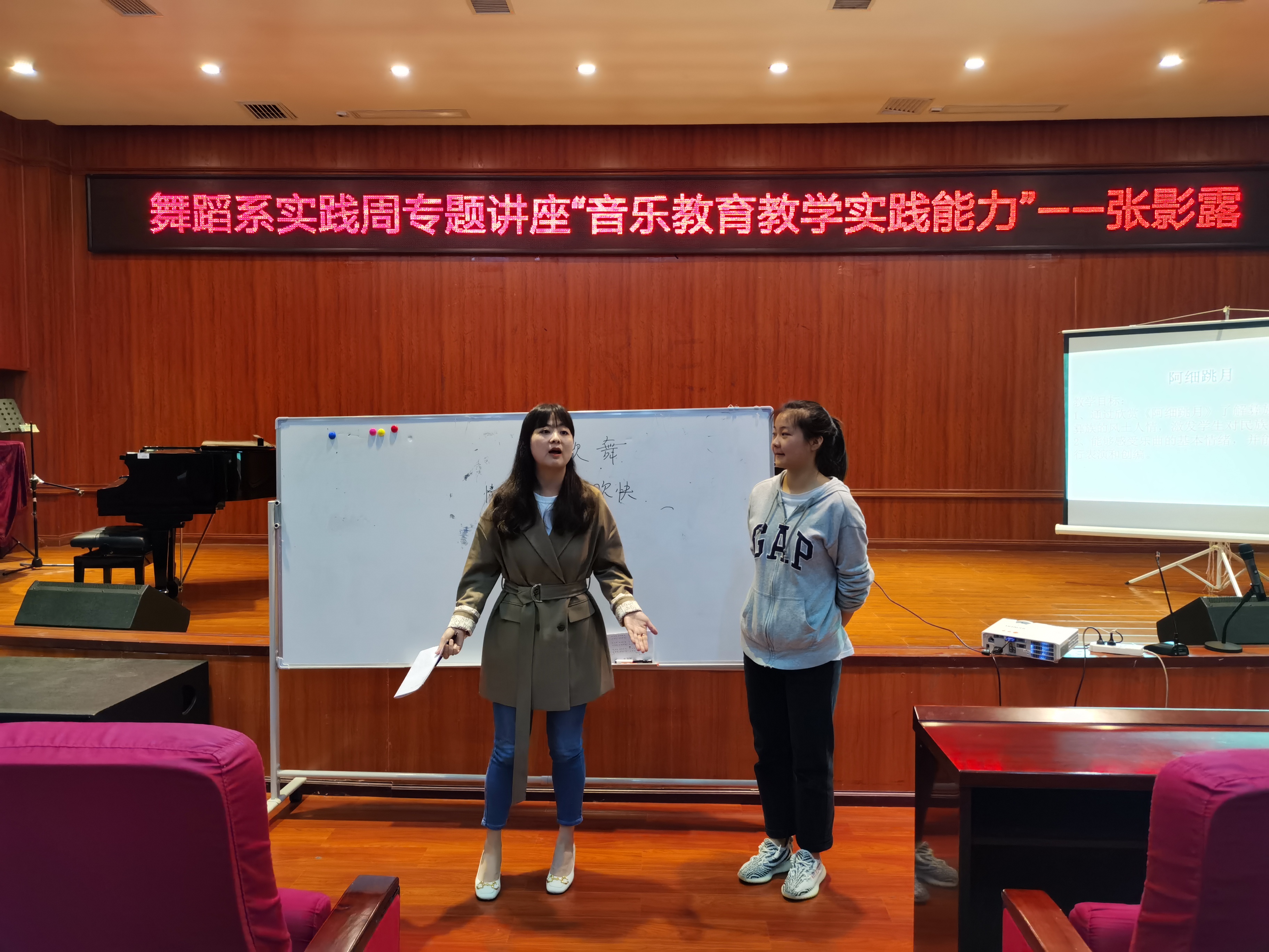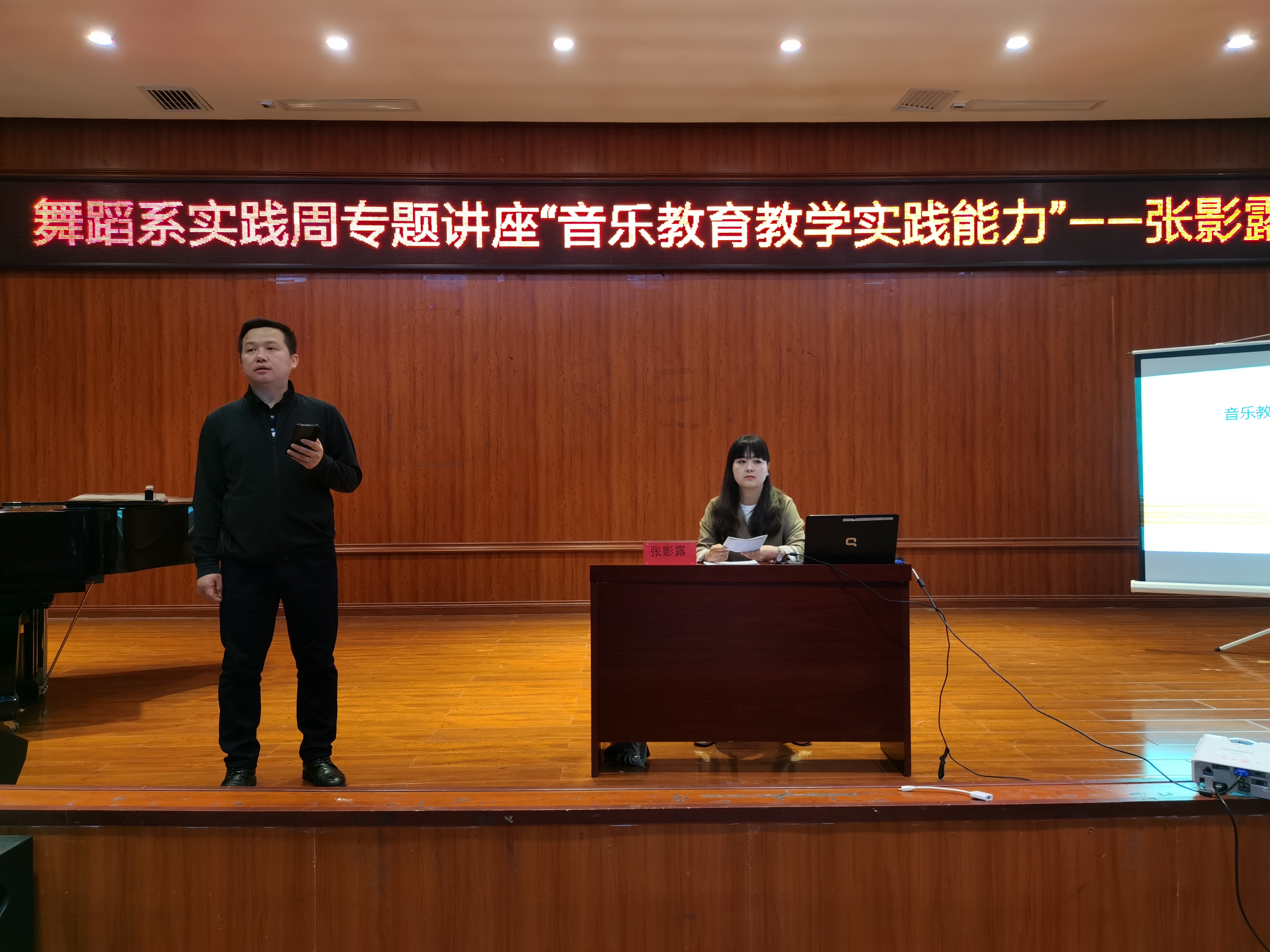 为了提升同学们考取中小学教师资格证的能力,5月20日上午九点,舞蹈系实践周开设专题讲座“音乐教育实践能力”,邀请到贵阳市环西小学一级教师张影露来到77779193永利官网集团六楼音乐厅进行讲座。参与讲座的有18级、19级、20级全体舞蹈系学生。