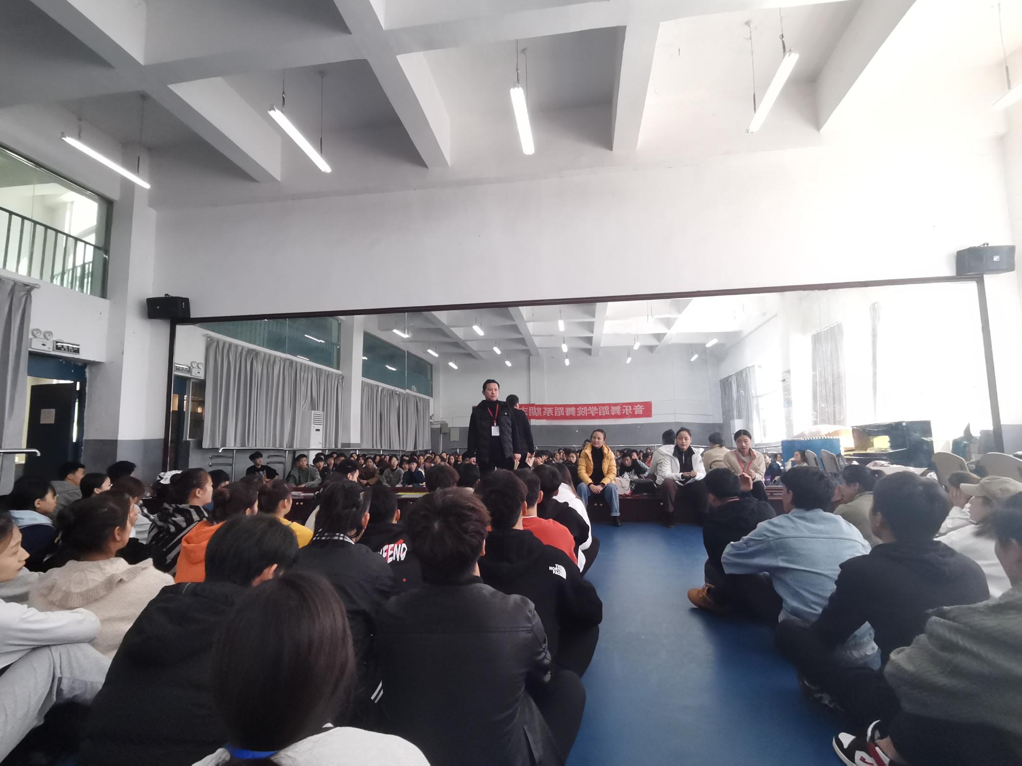 首先,肖伟对上周备战“荷花杯”的老师和同学们进行了表扬,两个作品获得贵州省专家一致好评。随后,鼓励同学们积极参与读书会,在完成专业课的同时增长课外阅读量。紧接着,又对勤工助学和早晚功大比拼进行讲解,希望同学们早起,养成早晚功的好习惯,在早晚功大比拼的时候大放光彩。最后,为了让同学们更好地迎接期中考试,更好的总结自身素质查漏补缺,并对期中考试进行了具体的动员部署。肖伟就期中考试的重要性进行详细的阐明,并具体部署期中考的考试范围,同时要求18、19级同学要认真复习,配合各老师的教学要求。