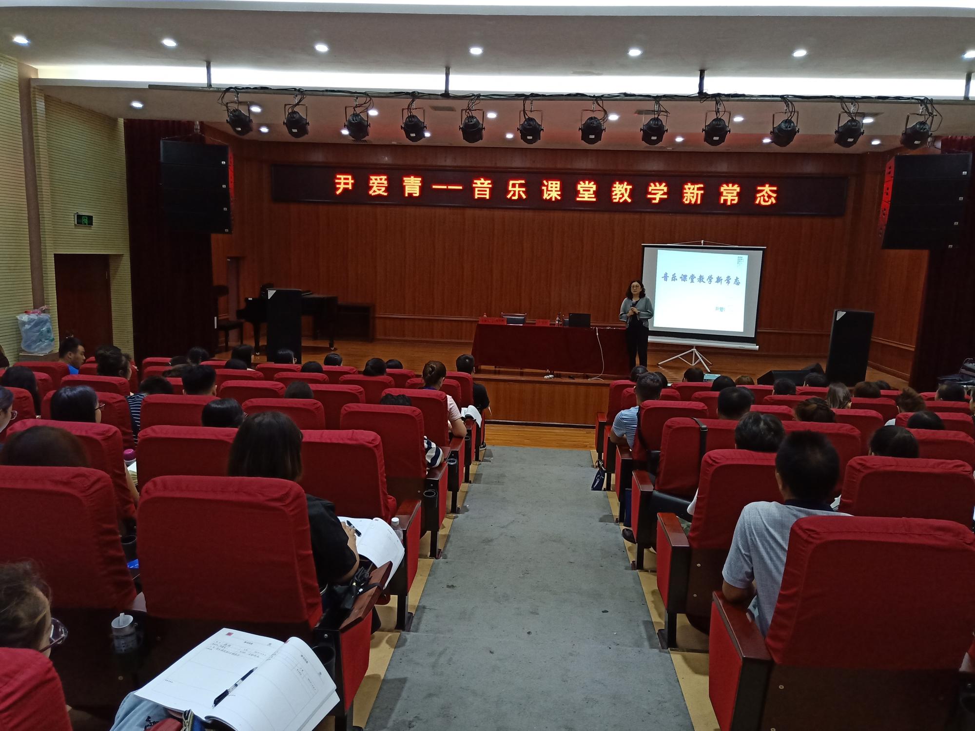 100%的学生享受到美育教育。尹教授对音乐课堂教学新常态作出了全面解读。