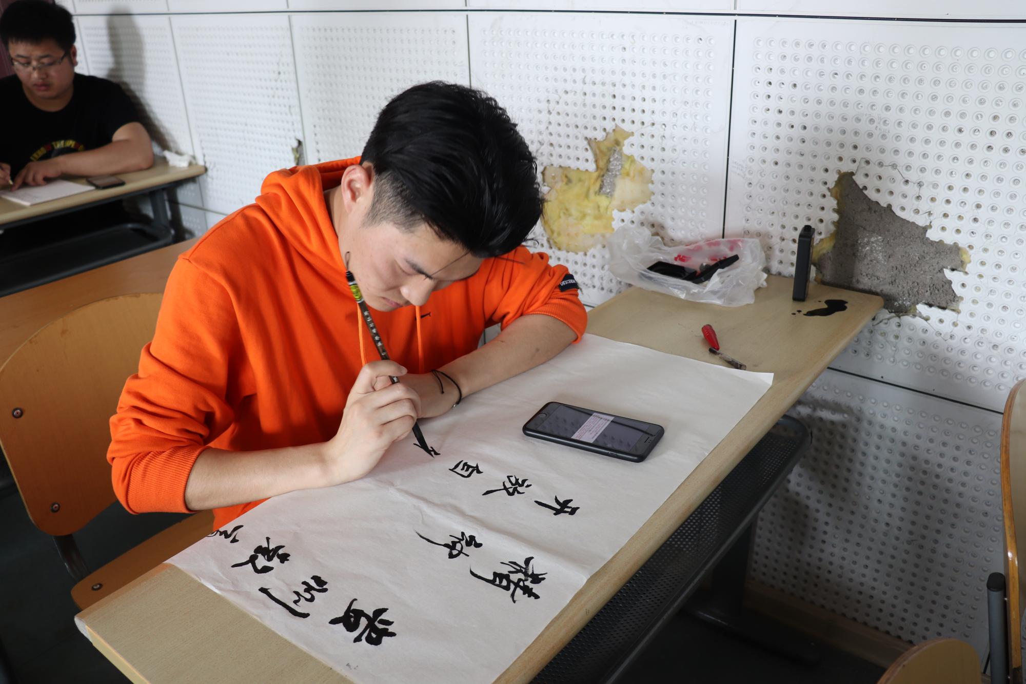 本次“三字”比赛邀请美术专业老师作为评委,经过认真评选,推选出岑滔、王永青、张进等八位同学参加全校“三字”比赛决赛。