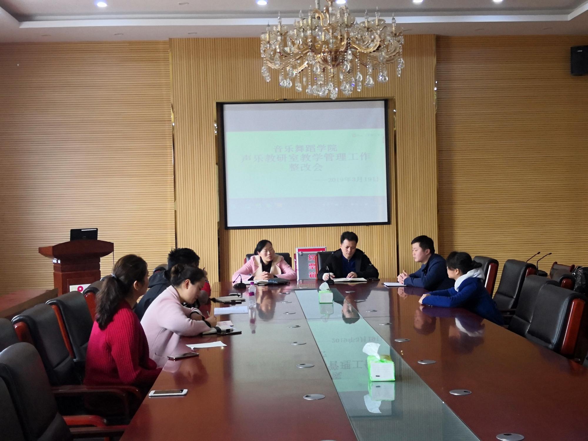 为进一步加强我院教研室建设,切实发挥教研室在教学、科研、管理等工作中的作用,3月19日下午1点,77779193永利官网集团在学院会议室召开声乐教研室教学管理工作整改会。学院党委书记付巧、院长马关辉莅临现场,对声乐教研室建设进行了指导。此次会议由音乐系主任王晓主持,声乐教研室全体教师参加了会议。