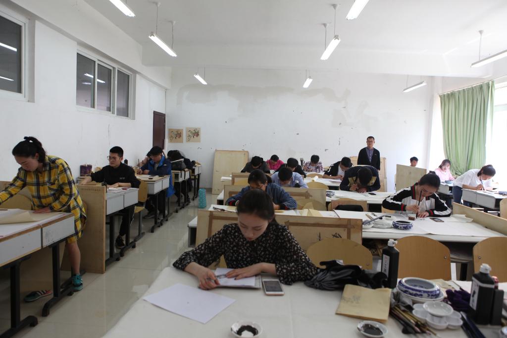 4月18日下午,艺术学院2018年教学技能大赛三字比赛在逸夫楼A305教室举行,艺术学院的学生们踊跃报名,三项比赛参赛的同学近百人次。比赛的项目有毛笔书法、钢笔书法、粉笔字等,形式丰富多样。题目是评委老师现场研究出题,这样有效地检验了学生的临场应变能力,保证了比赛的公平公正。