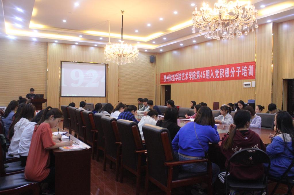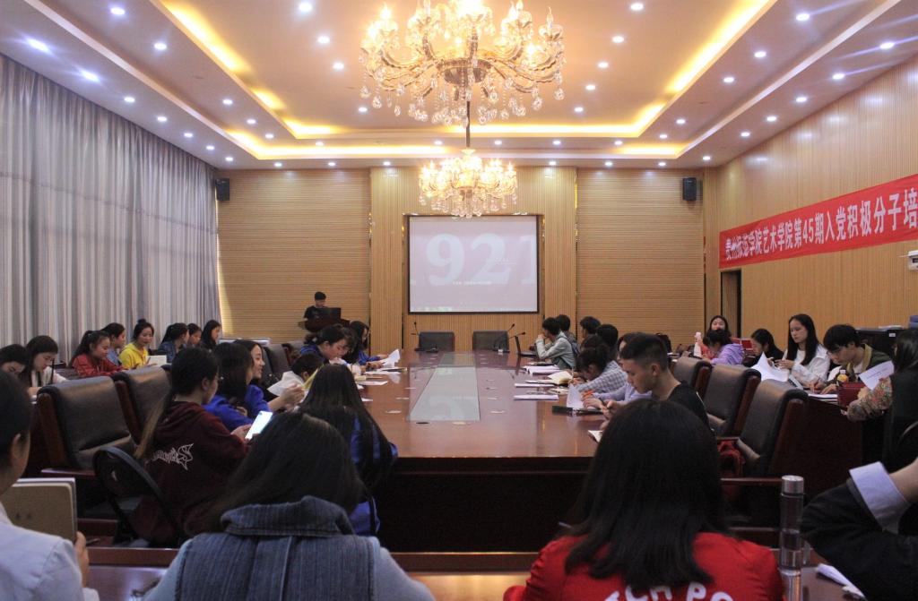 4月17日,艺术学院第45期入党积极分子培训班全体成员在艺术学院六楼会议室观看视频教学活动。