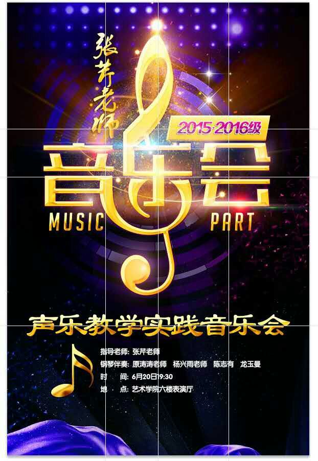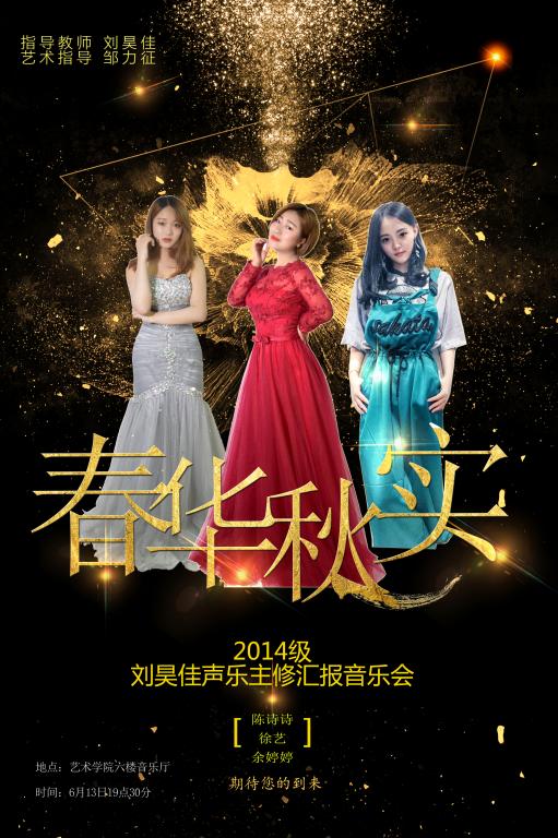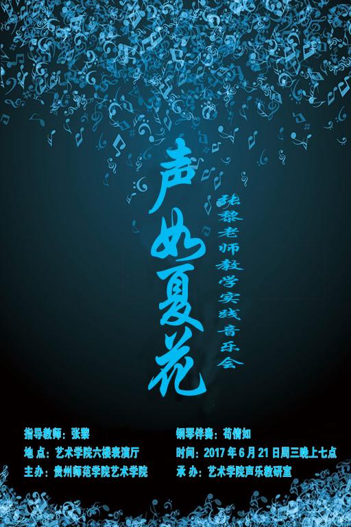 6月13日-24日,艺术学院声乐教学系列汇报音乐会顺利闭幕。此次系列活动包括《春华秋实》——刘昊佳2014级声乐主修生音乐会、何晶声乐教学师生音乐会、张芹声乐教学实践音乐会、《声如夏花》——张黎声乐教学实践音乐会、《艺启歌唱》——马关辉、王晓、王铎声乐教学汇报音乐会、《为你歌唱》——刘昊佳声乐教学汇报音乐会。活动邀请了多位院内外专业老师,受到了贵州工业职业技术学院人文社科学院副院长杜胜山等省内专家的认可和肯定,吸引了众多听众。